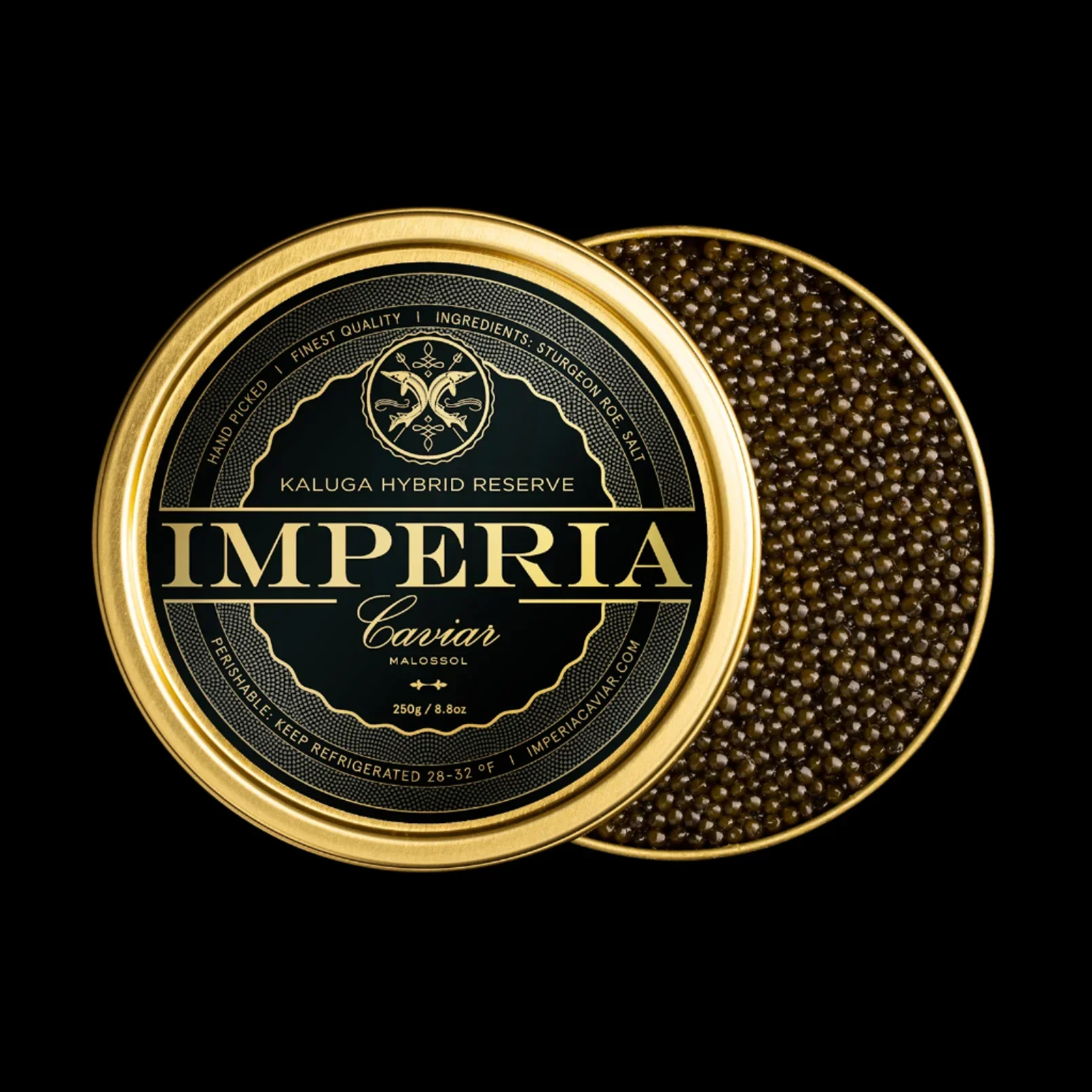Buy Kaluga Hybrid Reserve Caviar Online Indulge in the closest experience to legendary Beluga caviar available in the United States. Our Kaluga Hybrid Reserve caviar combines the prized Kaluga sturgeon — often called River Beluga — with Amur sturgeon to create pearls of extraordinary size and refined flavor. This hybrid delivers a buttery taste, satisfying firmness, and velvety smooth finish that has captivated caviar enthusiasts globally. What Makes Kaluga Hybrid Reserve Caviar Unique? Kaluga Hybrid Reserve caviar represents a masterful union of two distinguished sturgeon species — Huso dauricus (Kaluga) and Acipenser schrenckii (Amur sturgeon). This careful crossbreeding produces caviar with enormous pearls that showcase stunning dark amber to brown coloring, often highlighted with golden undertones. The visual presentation alone makes this caviar a centerpiece-worthy addition to any dish. The flavor profile distinguishes Kaluga caviar as remarkably balanced and approachable. Unlike more assertive varieties, this caviar opens with clean, buttery notes that develop into a mild yet sophisticated taste, finishing with remarkable smoothness. This gentle flavor makes Kaluga Hybrid Reserve caviar incredibly versatile — it enhances without overwhelming, making it ideal for everything from delicate egg preparations to roasted cauliflower dishes. At Imperia Caviar, we dedicate ourselves to maturing each batch of Kaluga Hybrid Reserve caviar until it reaches optimal flavor and texture. Our rigorous quality standards ensure every tin meets the elevated expectations of discerning customers who demand nothing less than perfection. Some characteristics of our fine River Beluga Hybrid Reserve caviar include: Flavor: Balanced, mild Size: Very large Coloring: Dark amber to brown with gold Species: Combination of Huso Dauricus and Acipenser Schrenckii (Amur) sturgeon Common Name: Huso hybrid or river beluga Swift Delivery, Peak Freshness Preserving caviar's delicate qualities requires expert packaging and expedited shipping. We take both seriously. Every order of Kaluga caviar leaves our facility in specially designed containers with cooling packs that maintain ideal temperatures throughout transit. Overnight shipping options allow you to receive your caviar quickly, minimizing the time from harvest to table. Your unopened Kaluga Hybrid Reserve caviar remains fresh in the refrigerator for up to three weeks, though we encourage consumption within the first week for the most vibrant flavors and textures. After opening, enjoy your caviar within 48 hours to experience it at its absolute best. Premium Kaluga Caviar at Remarkable Value Sophisticated dining experiences shouldn't carry prohibitive price tags. Imperia Caviar maintains direct partnerships with select farms , allowing us to purchase Kaluga caviar in significant volumes. This approach keeps our costs and yours substantially lower than traditional luxury retailers while maintaining uncompromising quality standards. Enjoy complimentary shipping on orders above $300, making luxury more accessible than ever. With Kaluga caviar averaging approximately $40 per ounce, you'll find our pricing highly competitive. Whether you're hosting an elegant soiree, operating a fine dining establishment, or simply treating yourself to culinary excellence, our volume availability ensures you can order confidently. Our customer service representatives welcome inquiries about bulk purchasing for events or business needs. Order Kaluga Caviar From Imperia Caviar Transform ordinary moments into memorable occasions with Kaluga Hybrid Reserve caviar. We stock Kaluga caviar in multiple sizes to suit various needs and occasions. Select your preferred size, place your order, and anticipate the arrival of caviar that rivals the world's finest at a fraction of the expected cost. For those seeking an immersive presentation, visit our Caviar Bar Experience page to explore original tin options perfect for entertaining. NO PROMOTIONS APPLY TO 1680g (59.2oz) VARIANT!