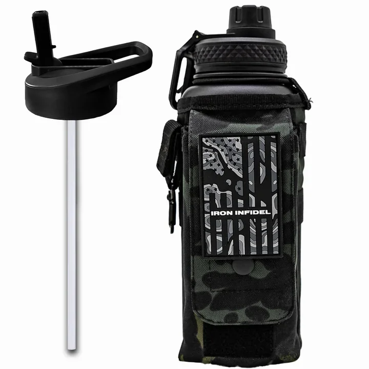 The 64oz Battle Bottle was built for those who value toughness and gear that lasts. This steel fortress keeps your hydration ice-cold for 48+ hours (and hot up to 24 hours) while the tactical sleeve secures your essentials. ✓ MOLLE webbing for extra gear ✓ Built-in storage for phone, wallet, keys ✓ Ultra durable ✓ Keeps drinks ice-cold for 48+ hours Stop settling for flimsy bottles that fail when you need them most. Order your Battle Bottle today.