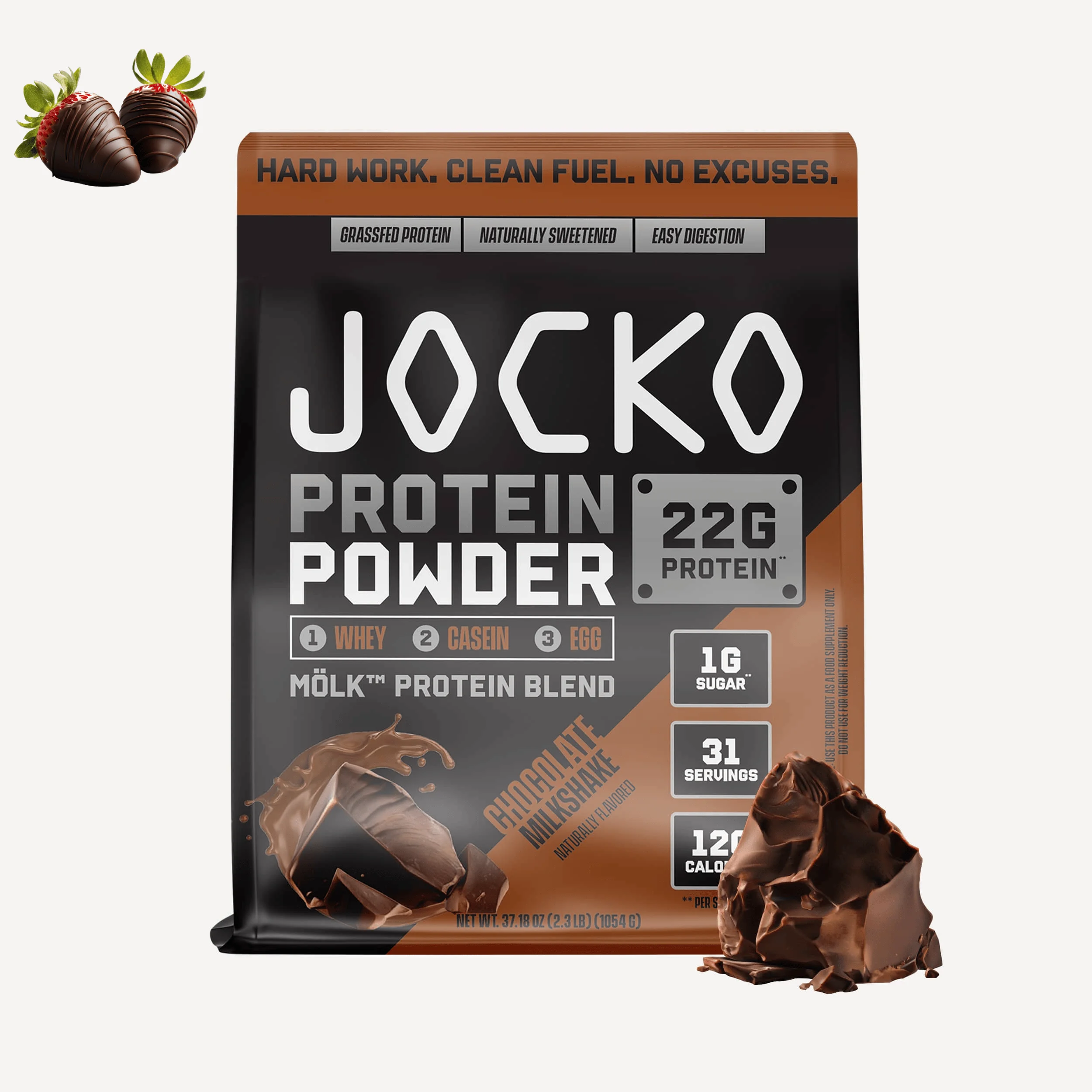 Fuel strength and recovery without compromise. Our Whey Mölk Protein Powder combines four protein sources into a precise time-released blend that ensures a steady release of nutrients to support muscle health all day long. Additional digestive enzymes and probiotics deliver the protein you need while avoiding poor digestion, stomach aches, and bloating. Sweetened with Jocko GOOD Sweetener®, a carefully crafted blend of allulose, monk fruit extract, and reb-M, designed to provide a delicious, low-calorie sweetness without compromising on taste or safety. *FDA Disclaimer: These statements have not been evaluated by the Food and Drug Administration. This product is not intended to diagnose, treat, cure, or prevent any disease.