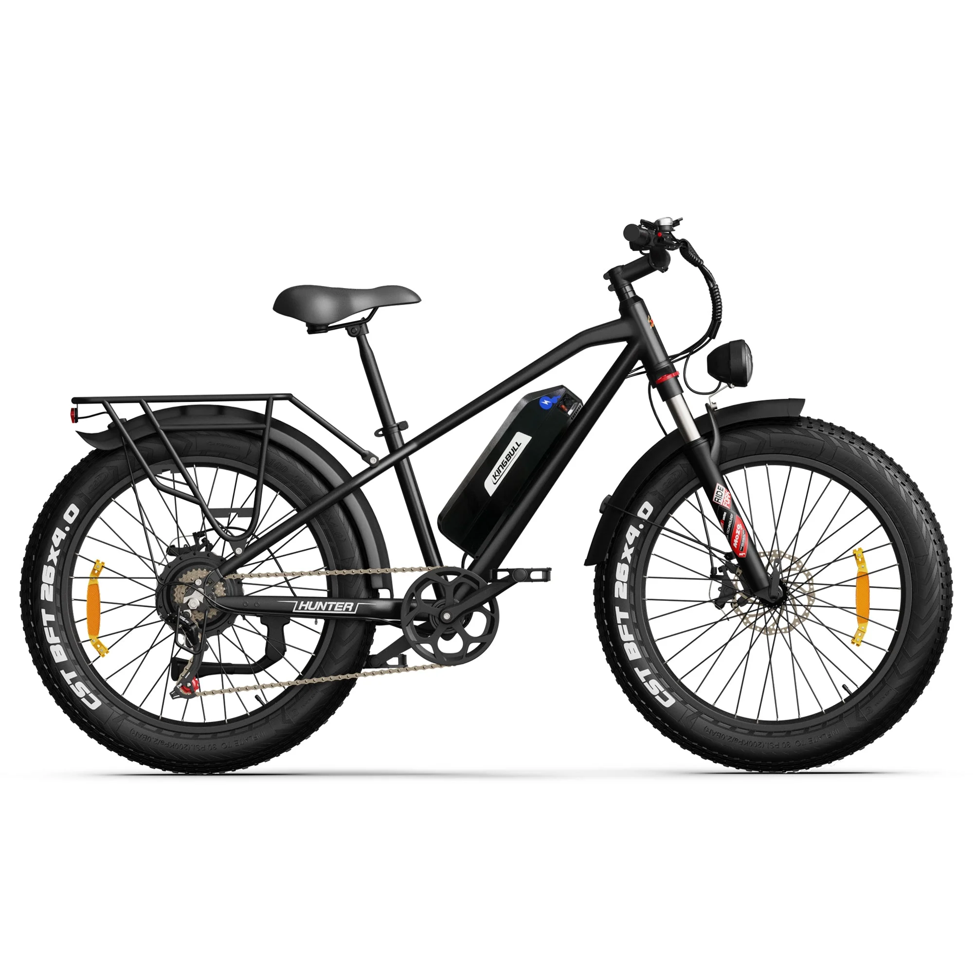 Experience the ultimate adventure with the Kingbull Hunter 2.0, a high-performance electric mountain bike designed to conquer the most challenging terrains with ease. This powerful off-road ebike features rugged 26" x 4" fat tires that provide exceptional traction and stability across sand, snow, and mud, while its upgraded 750W motor and responsive hydraulic brakes ensure a safe, exhilarating ride. Whether you're exploring deep backcountry trails or commuting through the wild, the Hunter 2.0 offers an impressive 55-mile range, making it the most durable and versatile choice for riders seeking a premium all-terrain experience.