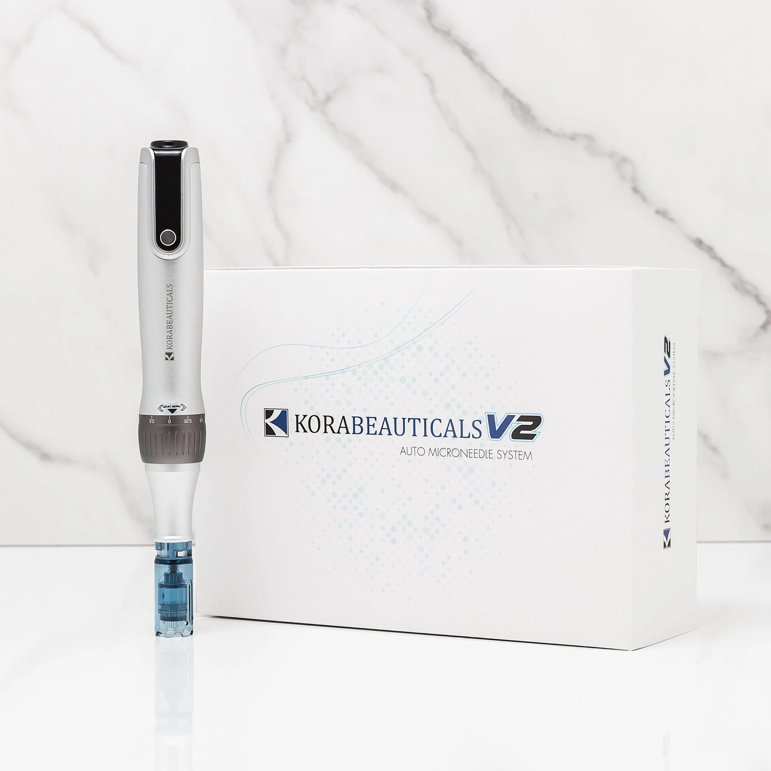 Korabeauticals V2 glides over the skin creating millions of fine, vertical fractional channels up to 104% faster to other microneedling pens.