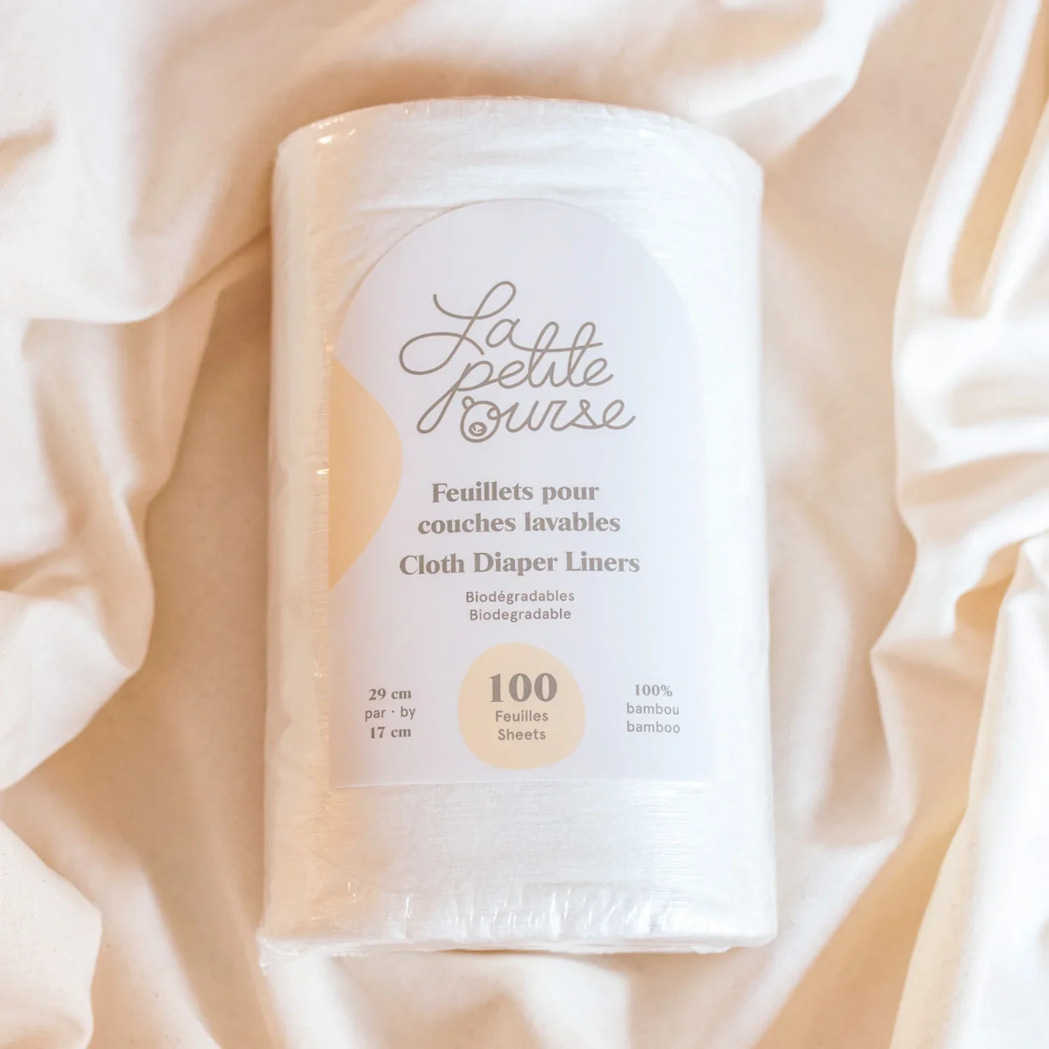 Rouleau de feuillets de fond de couche en bambou de 17 centimètres de largeur. Chaque rouleau contient 100 feuillets. Il vous suffit de mettre un feuillet au fond de la couche de bébé pour que les changements de couches soient encore plus faciles! Le feuillet retiendra les selles de bébé et il ne vous restera plus qu’à retirer le feuillet et à le jeter. Sa largeur et son épaisseur viendront à bout même des selles liquides! Pour une meilleure efficacité, mettre le feuillet en le faisant légèrement dépasser de la couche à l’arrière. Information importante: - Malgré qu’ils soient biodégradables, nous recommandons de les jeter directement à la poubelle pour éviter de bloquer votre drain.