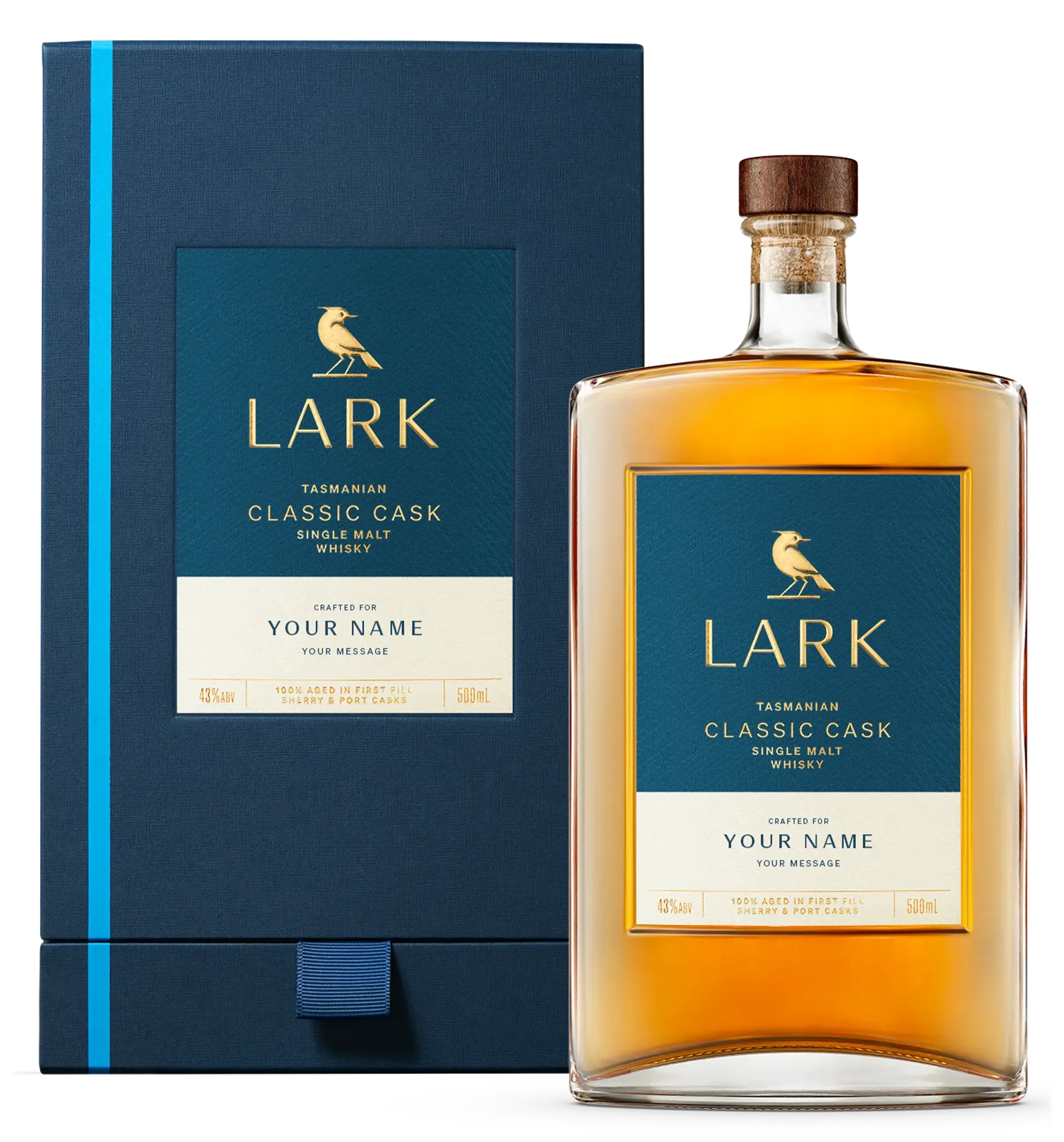 Make our story uniquely yours with a personalised bottle of our award-winning Classic Cask Single Malt Whisky. Our iconic Tasmanian Classic Cask can now be transformed to mark that special occasion or moment in time. Each bottle & box is made by hand to order and shipped next business day. A harmonious balance of sweet, spicy and savoury elements make this the perfect dram for whisky-lovers at all stages of their whisky-drinking journey. An approachable exceptional classic for the connoisseur, the collector or the curious. Best enjoyed by anyone, any way you like. Handcrafted at our Coal Valley Distillery, Classic Cask 43% is a true labour of love from the second it leaves our stills to the moment the cork is popped. It features the citrus and rich plum pudding of the LARK house style with a hint of Tasmanian peat. Based on the original recipe from founder and Pioneer Bill Lark, and a whisky home to countless awards and international medals. We are currently only able to print English and Chinese. Please Note: LARK have the right to refuse any offensive language or special characters on our labels. Any words or wording that we find may fall under this bracket, our team will reach out to you to find an alternative that is appropriate for your label. We are also unable to print emojis, images or international characters aside from Chinese onto our labels.