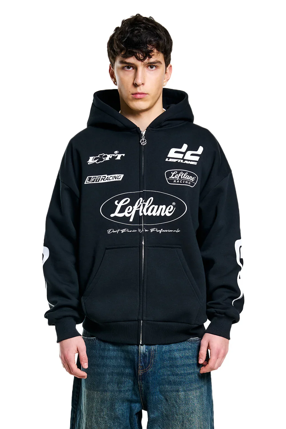 Model Height Size Male 183cm M FRONT PRINT BACK PRINT BLACK OVERSIZED ZIPPER 80%BAUMWOLLE/20%POLYESTER/360GSM
