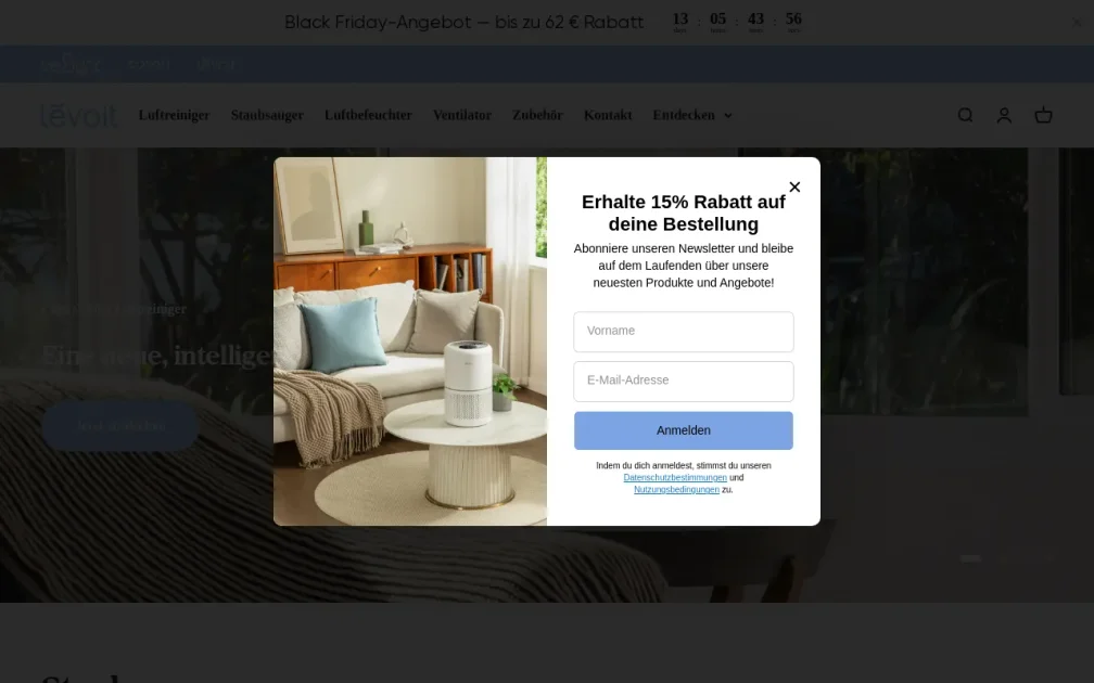 Entdecke Levoit Deutschland für erstklassige Luftreiniger, Akku-Staubsauger, Luftbefeuchter und Turmventilatoren. Genieße saubere Luft und innovative Lösungen für dein Zuhause.