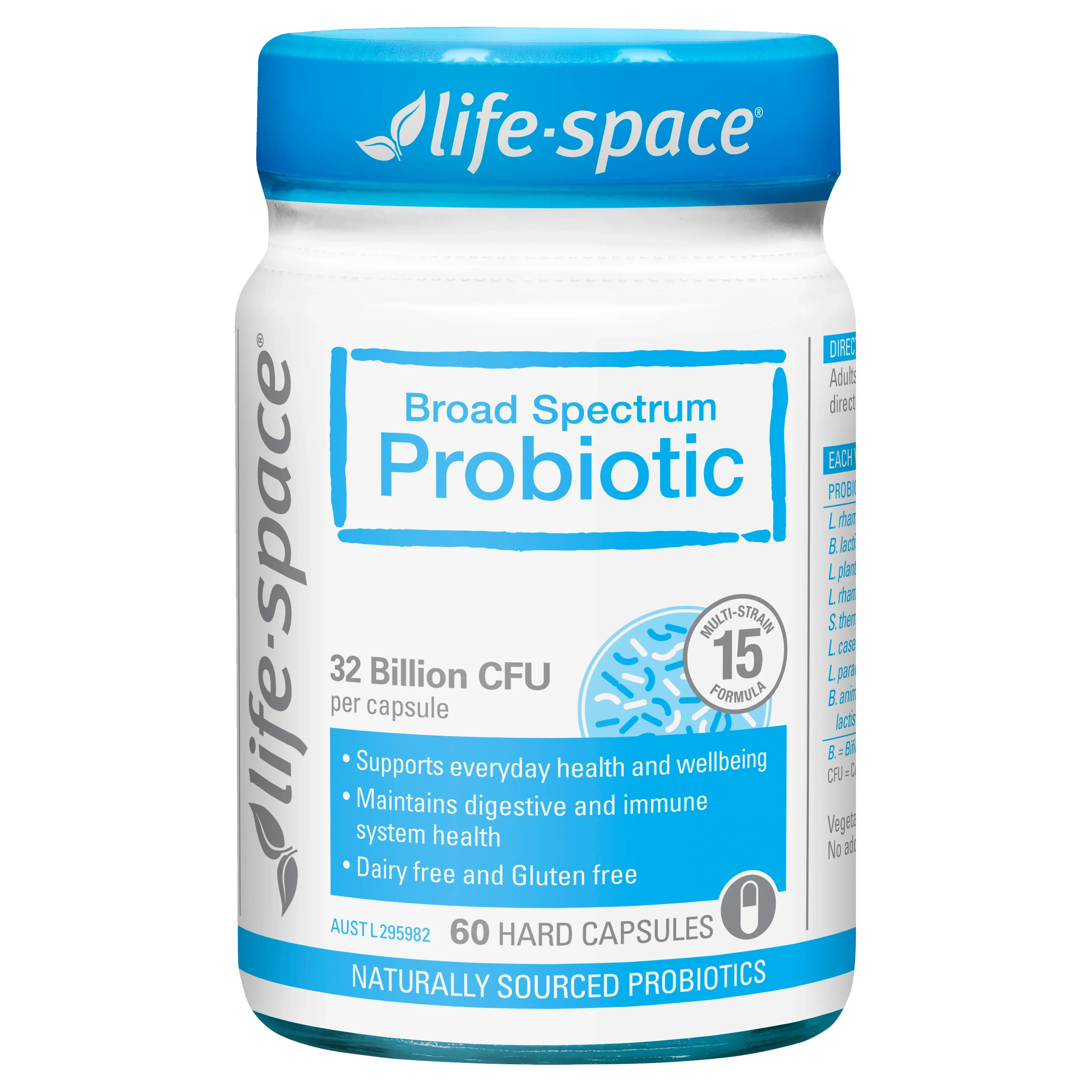The digestive system microbiome contains a diverse range of bacterial species. Life-Space Broad Spectrum Probiotic contains 15 strains of beneficial bacteria and supports a healthy digestive system. This formulation contains selected probiotic strains supported by over 50 human clinical trials. Specifically formulated to: Support everyday health and wellbeing Maintain immune system health Support the intestinal microbiome Support healthy bowel function