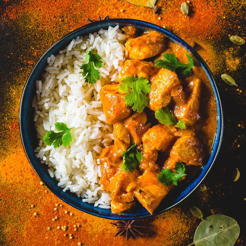 Ingredients: Chicken Breast, Basmati Rice, Tomatoes, Coconut Cream, Coconut Milk, Brown Onion, Curry powder, Ginger, Garlic, Garam Masala, Tumeric, Coriander Powder, Cumin, Cayenne Pepper, Water, Butter (Cream(Milk)), Brown Sugar, Kasoori Methi CONTAINS : Dairy MAY CONTAIN : Crustacea, Sesame, Fish, Egg, Soy, Lupin, Peanuts, Tree Nuts, Sulphites, Wheat, Gluten
