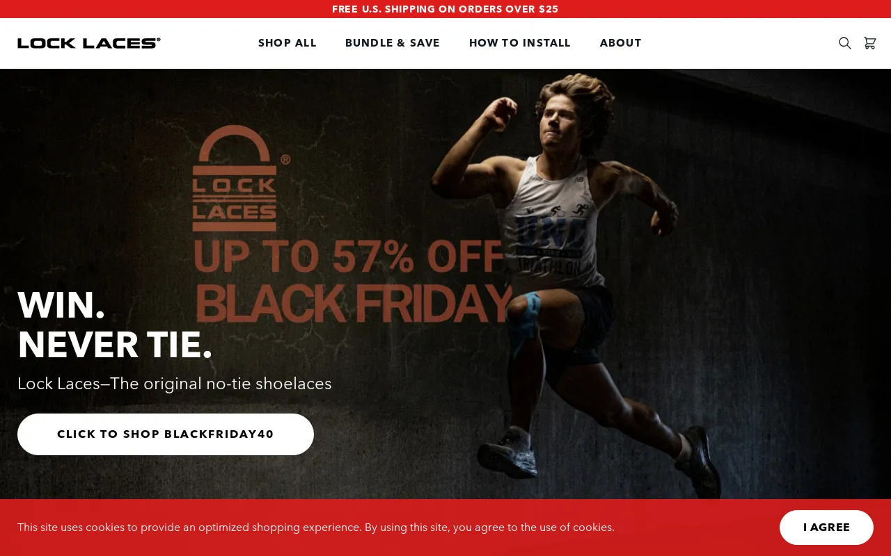 LOCK LACES® are the #1 performance lacing system in the world with over 9 million pairs sold. Win. Never tie. ® www. Locklaces. Com