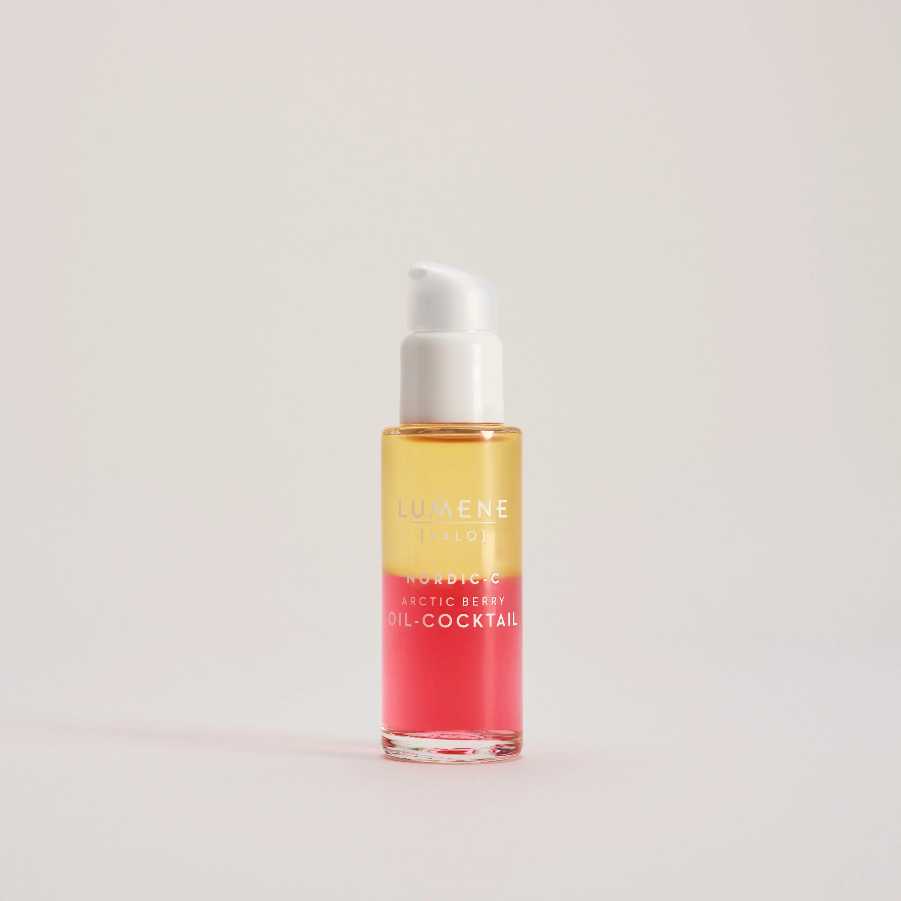 Replenish your skin’s glow with LUMENE Nordic-C [Valo] Arctic Berry Oil-Cocktail. The unique bi-phase formula combines a blend of Nordic nature’s most treasured antioxidant-rich berries containing essential fatty acids; Arctic cloudberry, Nordic cranberry and lingonberry, to a cocktail of C, A precursor, B3, B5 and E vitamins. The nurturing serum helps to replenish even the driest skin and protect its beauty for perfectly hydrated, radiant and velvety smooth looking complexion. The product is vegan, containing upcycled and wild-crafted ingredients. Packaging is made with recyclable and recycled materials. Clinically tested: +91% more luminous skin* In a self-evaluation study: 100% agree skin looks more radiant** 100% agree skin feels soft and smooth** 96% agree skin is energized** 96% agree skin is moisturized** 97% agree skin feels supple** *Clinical expert evaluation, 27 consumers, 4 weeks **Self-evaluation, n=27