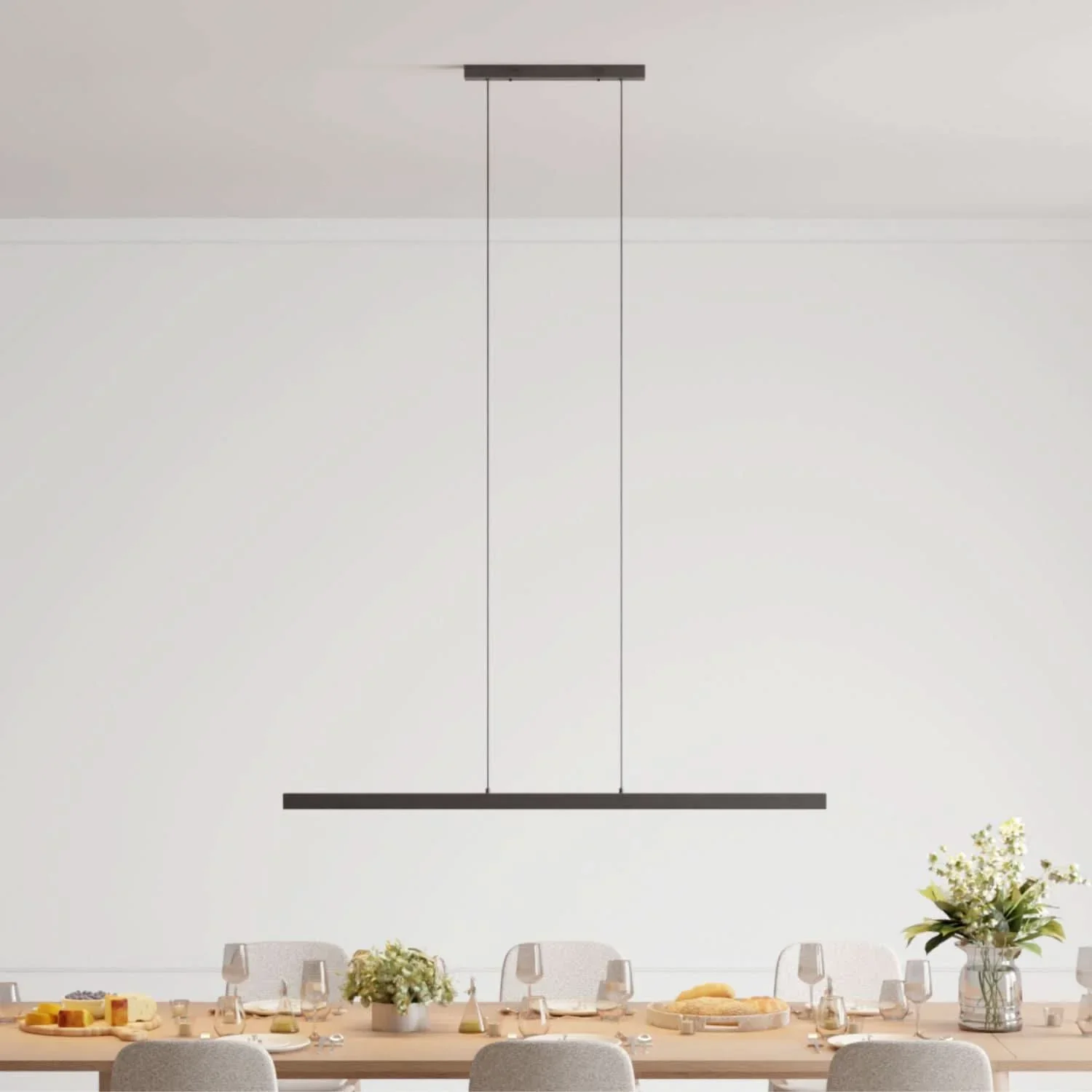 Unsere Learis Designer Pendelleuchte zeichnet sich durch ihre nach unten strahlenden Leuchtköpfe, die einzeln höhenverstellbar sind, aus. Somit bestrahlt die Leuchte blendfrei deinen Ess- oder Arbeitstisch mit angenehmem Licht und erzeugt darüber hinaus eine einzigartig moderne Optik.