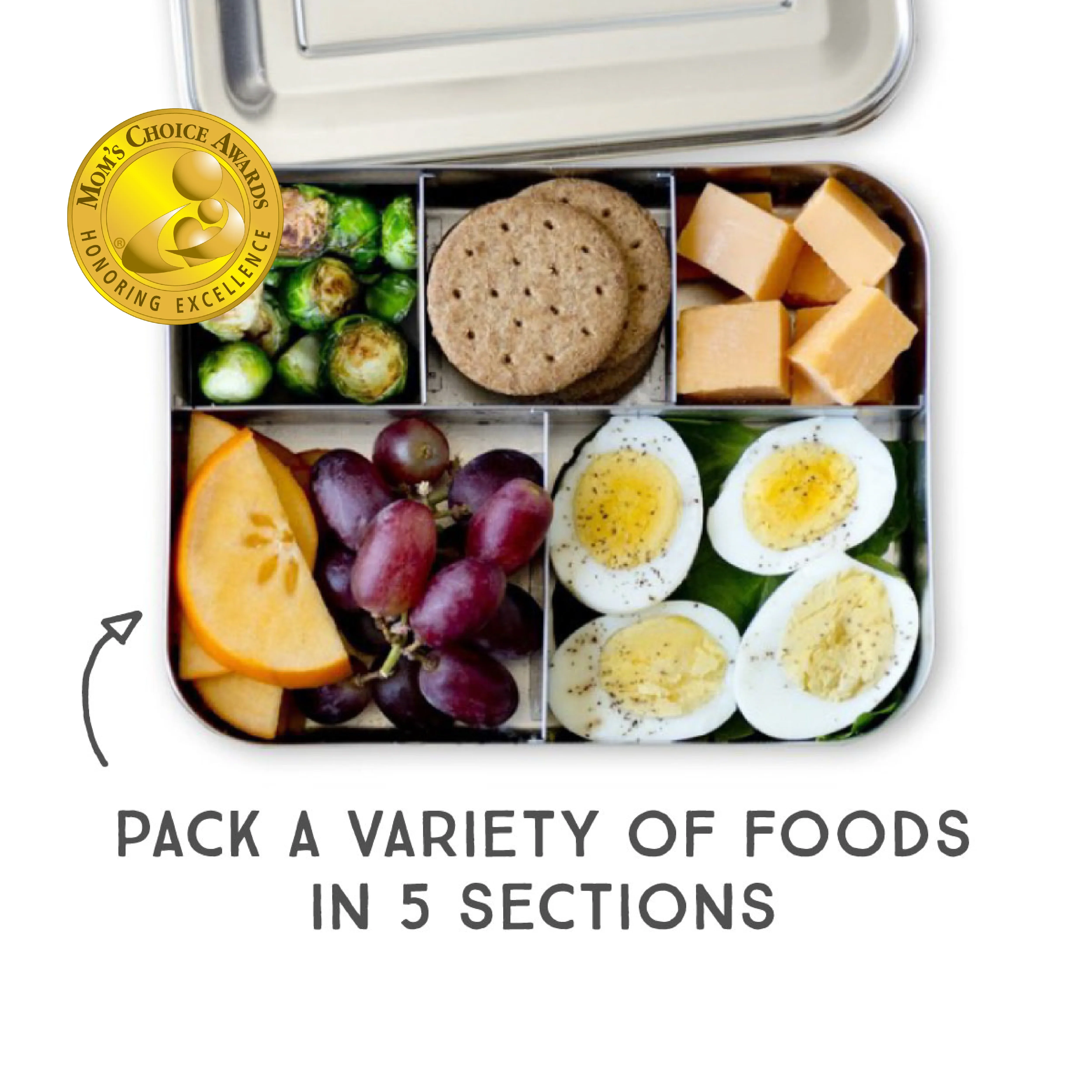 The Medium Trio’s three compartments are custom designed to fit a 1/2 sandwich and 2 small sides. Our best-selling stainless steel bento box for young kids and small appetites makes it easy for moms and dads to pack a variety of foods.