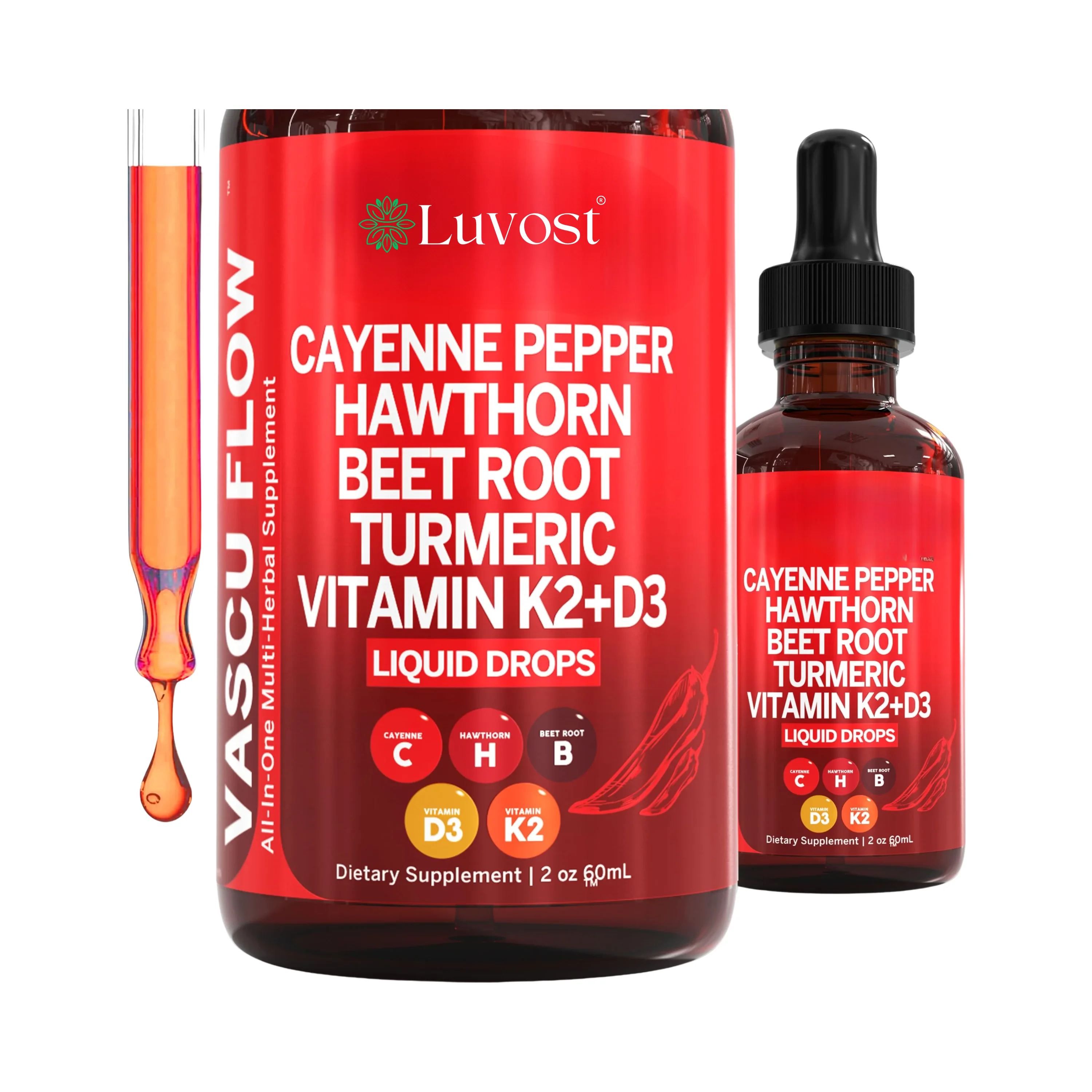 Formulated Vascu Flow Complex, featuring Cayenne Pepper, Hawthorn Berry, and Berberine to support heart health, circulation, and metabolism.