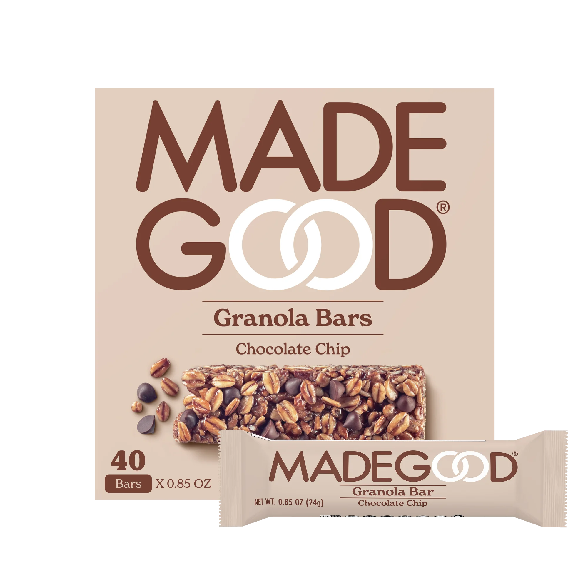 Get ready to elevate your snacking game with MadeGood Chocolate Chip Granola Bars! Each bite combines crunchy granola and luscious chocolate chips, creating a delightful treat that’s loved by kids and adults alike. It’s a classic for a reason, and we’ve made it even better! Our bars are crafted with organic, vegan, and gluten-free ingredients, ensuring everyone can indulge guilt-free. But we didn’t stop there—each bar is packed with a full serving of hidden vegetables, turning a delicious snack into a smart choice! Perfect for on-the-go munching or a midday pick-me-up, these bars will satisfy your sweet cravings while fueling your day. Dive into a deliciously nutritious experience with MadeGood—because snacking should be fun and healthy! Certified Nut-Free Allergy Friendly Nutrients from Vegetables USDA Organic Certified Gluten-Free Non-GMO Project Verified Certified Vegan Kosher Parve Ingredients : Pure Gluten Free Oats*, Agave Syrup*, Chocolate Chips* (Cane Sugar*, Unsweetened Chocolate*, Cocoa Butter*), Brown Rice Syrup*, Sunflower Oil*, Invert Cane Syrup*, Brown Rice Crisps*, Vegetable Extracts (Spinach, Broccoli, Carrots, Tomatoes, Beets, Shiitake Mushrooms), Natural Flavor*, Agar*, Salt. *Organic Product information and packaging may change. For current information, refer to the packaging on store shelves.