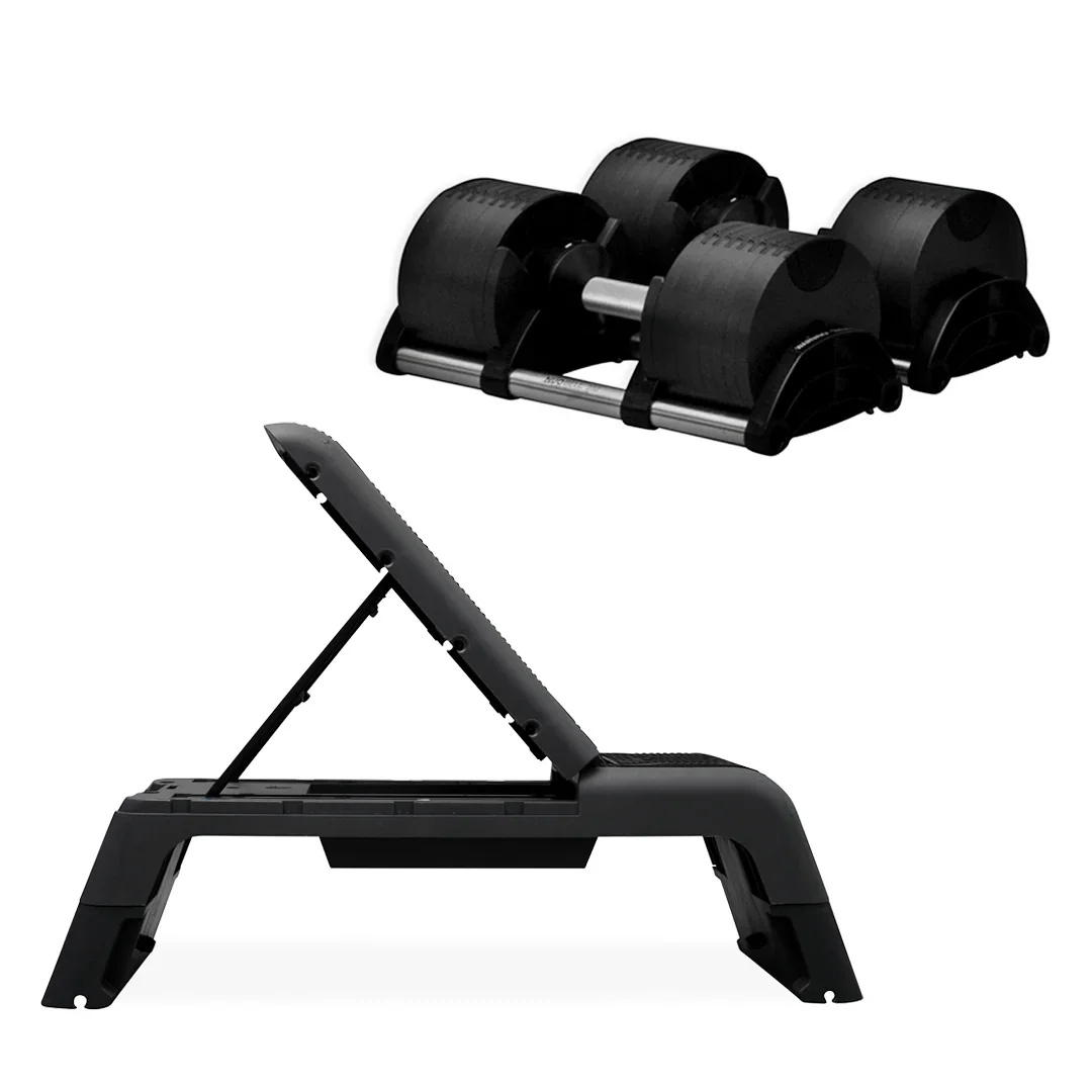Dumbbells: The patent-pending MAGIC Smart Dumbbells replace an entire weight rack with a 10-in-1 weights solution. They increase from 2kg all the way to 20kg in 2kg increments ensuring you can progress easily. Together they total 40kg of weight and are easily adjustable with a single 1-second twist of the handle. Bench: A compact aerobic bench enabling you to adjust to 5 positions including flat, high incline, lower incline, decline and step to get the most out of your workouts. It easily folds down flat for storage under the bed, sofa or cupboard. You can complete all typical weights, cardio and aerobic exercises with this slick bench that blends beautifully into the home.