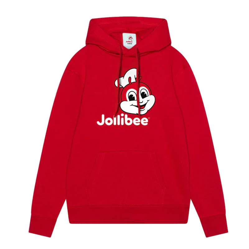 Discover our classic Jollibee Red Hoodie from our original collection! This unisex loose-fit fleece hoodie puts softness first. Features a loud & proud screen-printed Jollibee Mascot logo on the center of the chest and tipped drawstrings that elevate this classic. Bring comfort & warm joy wherever you go!