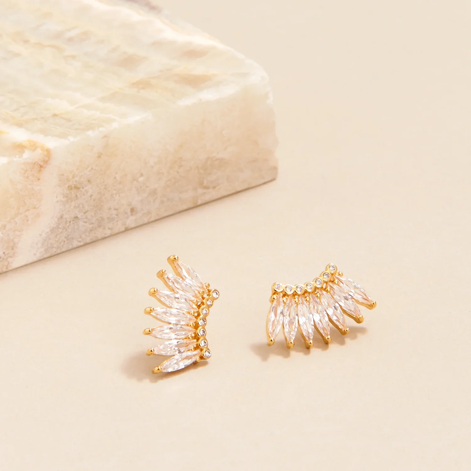 Our classics collection brings subtle femininity to your everyday. Encrusted with light-reflecting crystals, these new modern and simplistic silhouettes were designed for easy layering. Based on our signature Madeline shape, this petite stud silhouette is equally full of shine and easy to wear.