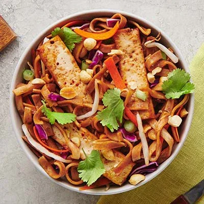 Move over, Pad Thai: our spin on the takeout classic has a tangy twist and even more veggies! Perfectly cooked rice noodles are coated in a zesty tamarind sauce and tossed with crisp bean sprouts, carrots, and red cabbage. It’s topped off with baked tofu and crushed peanuts for extra protein. Indulgence you can feel good about.
