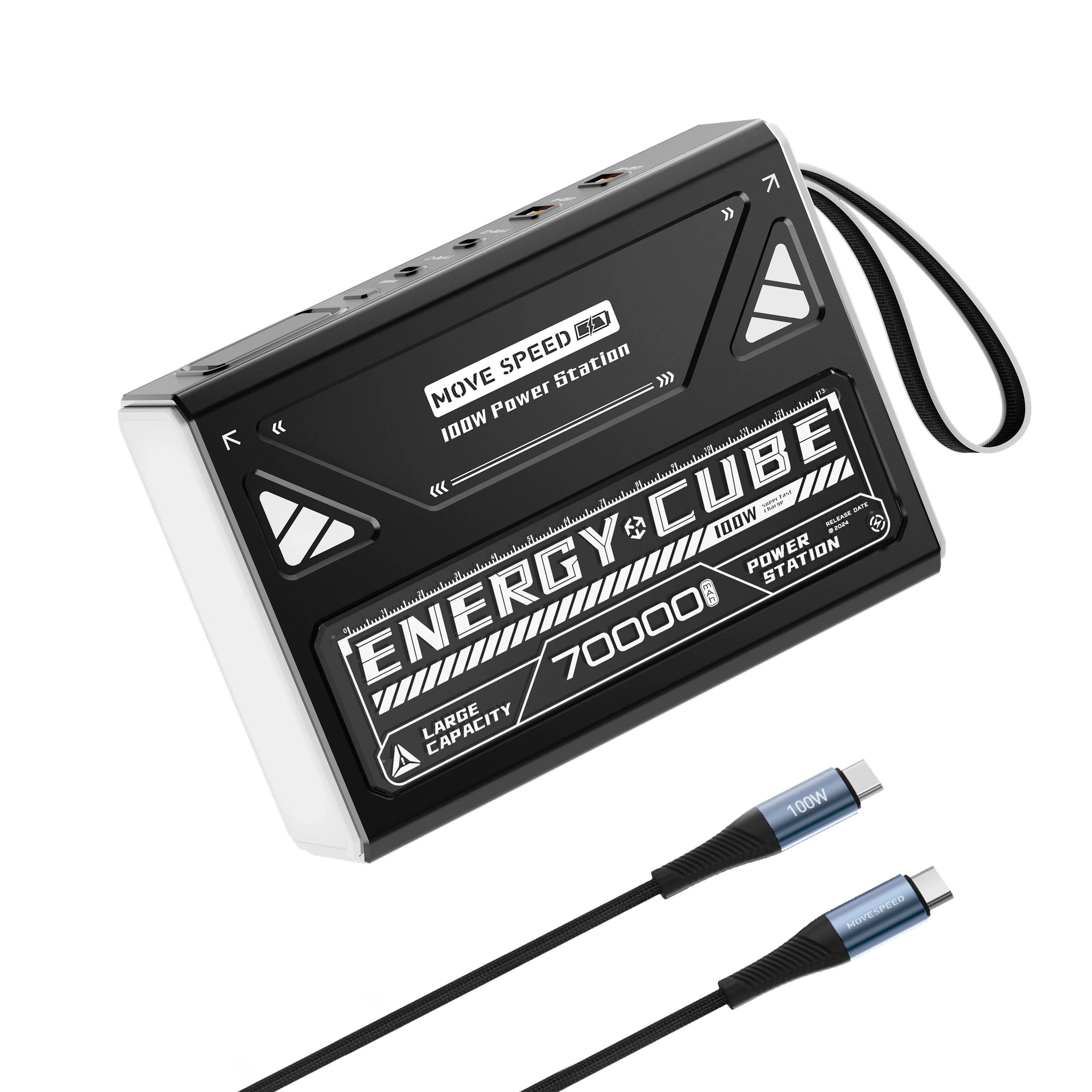 2024 New Upgrade Version -- MOVE SPEED 70000mAh 100W High Capacity High Output Power Bank 1. 70,000mAh (259 Wh)Ultra Large Capacity, Fully Charge your iPhone 15 14 times, MacBook Air 5 times. 2. Composed of 6*11800mAh High-density Lithium Polymer Battery, which Enables Greater Capacity and Smaller Size. No Fake Publicity of Power Capacity. 3. Ultra-fast Charging Experience with Max 100W Output, Compatible with SCP/FCP/QC Fast Charge Protocol, Fully Power your Device in the Shortest Time. 4.Convenient 4 Outputs and 2 Inputs, 2 Type C and 2 USB-A ports. Suitable for Charging Multiple Devices at the Same Time. 5. Support Fast Recharge through USB-C Ports: USB C1 port support 65W input, USB C2 port support 45W input. 6. Light in the Dark, 3 Level White Lighting and SOS Flashing Mode. 7. Builded-in LCD Digital Display. Remaining Power in a Glance. When Fast Charging, the "lightning" Sign Prompts Fast Charging 8. Support Pass-Through Charging Function, You can Achieve Simultaneous Fast Input and Output Through Two USB-C Ports. 9. UL 2056 Certification, 10 Built-in Smart-Protections to Assure Charging Safety. 10. High-Quality 100W USB C to C Charging Cable Included. Note: 3-Year Product Wa rranty to give you more Peace of Mind When Buying Package comes with a 100W USB C to C Cable, it can be Used to Finish Fast Input and Output. Max 100W Output - Ultra Fast Charging - Support 2 MacBooks Fast Charging at the Same Time Ultra Fast Charging, Save your Time Full Range Fast Charging Protocol Compability. Z70pro Energy Cube battery bank compatible with PPS/PD3.0/QC3.0/QC4+/FCP/SCP/AFC protocol, 1) can charge your MacBook pro 14'' to 40% in just 30 minutes. 2) can charge your iPhone 15 to 50% in just 30 minutes. USB Ports Output Details -- Support 4 Devices Charging at the Same time 1) Single port Output: Type C1 Output Only: 100W Type C2 Output Only: 45W USB-A1/A2 Output Only: 22.5W 2) Dual ports Output: Type C1 + C2:PD65W + PD35W 3) Four ports Output: Type C1 + (Type C2+UAB-A1+USB-A2): PD65W + 15W Notes: All our Charge and Store devices are Full Capacity and Full Speed. If you find any fake capacity or speed device, you can ask us for a full re-fund. The MOVE SPEED Z70 Pro Portable Charger Power Bank is compatible with multiple devices and has 4 USB ports! 4 output ports: One 100W USB-C port, One 45W USB-C port, Two 22.5w USB-A fast charging output ports, which can charge multiple devices at the same time. Two Inputs: Provides 2 charging options via Type-C1 or C2 input. Compatible with MacBook, Laptop, iPhone, Android Smartphone, Samsung Galaxy, iPad, Switch, Apple Watch, GOPRO, Drone, Camera, Dash Cam, Headphones, Earphones, Watches, Camping lights, Small fans, Heated vests and more! A big power bank with large capacity can meet all your daily needs. Best Companion for Outdoor and Back up for Emergency!! Application: Best large capacity power bank for dash cam, school, beach day, day trip, night light, fan, camping, travel, Hurricane season power outages, hiking, etc You can put it in the trunk of the car for camping and disaster prevention! Tips 1: Support PD protocol. Solar panel Type-C output can charge Z70 Pro power bank Tips 2 : The product has a large capacity of 70000mAh, so the capacity must contain 6 lithium polymer batteries of 11666mAh, so the weight of the product is 1.6kg(3.42lbs). If you encounter a product that is too light in weight, pay attention to the fake capacity or battery quality. Tips 3 : When charge low current devices (fans, headphones, etc), When the power of small device is almost full, the charging current is very small. When the current is lower than 100mA, the power bank will detect that the current is small and mistakenly think that it is not charging, thus terminating the output. This is normal. Battery Capacity 70000 mAh(259 Wh) Output (4 ports) Type C1:5V/3A;9V/3A;12V/3A;15V/3A;20V/5A; Type C2:5V/3A;9V/3A;12V/3A;15V/3A;20V/2.25A; USB-A1/A2:5V/3A; 9V/2A;10V/2.25A;12V/1.5A Input (2 ports) Type C1:5V/3A;9V/3A;12V/3A;15V/3A;20V/3.25A; Type C2:5V/3A;9V/3A;12V/3A;15V/3A;20V/2.25A; Lighting 3 Level White Light + SOS Mode LxWxH(inches) 1.93x7.41x5.46 Weight 1.6 KG/3.42 lbs Notes for turning on the Light Double Press the power button quickly and briefly