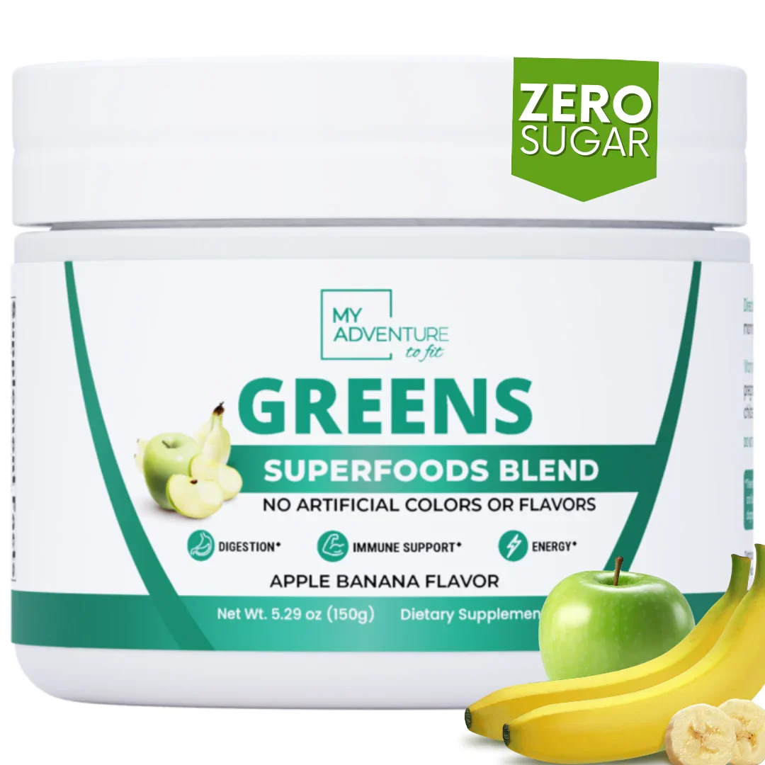 Our Apple Banana Greens Superfood Blend makes it simple to get your daily fruits and vegetables in one delicious scoop. With just 10 calories, zero sugar, and a naturally refreshing flavor, it’s an easy way to nourish your body every day.
