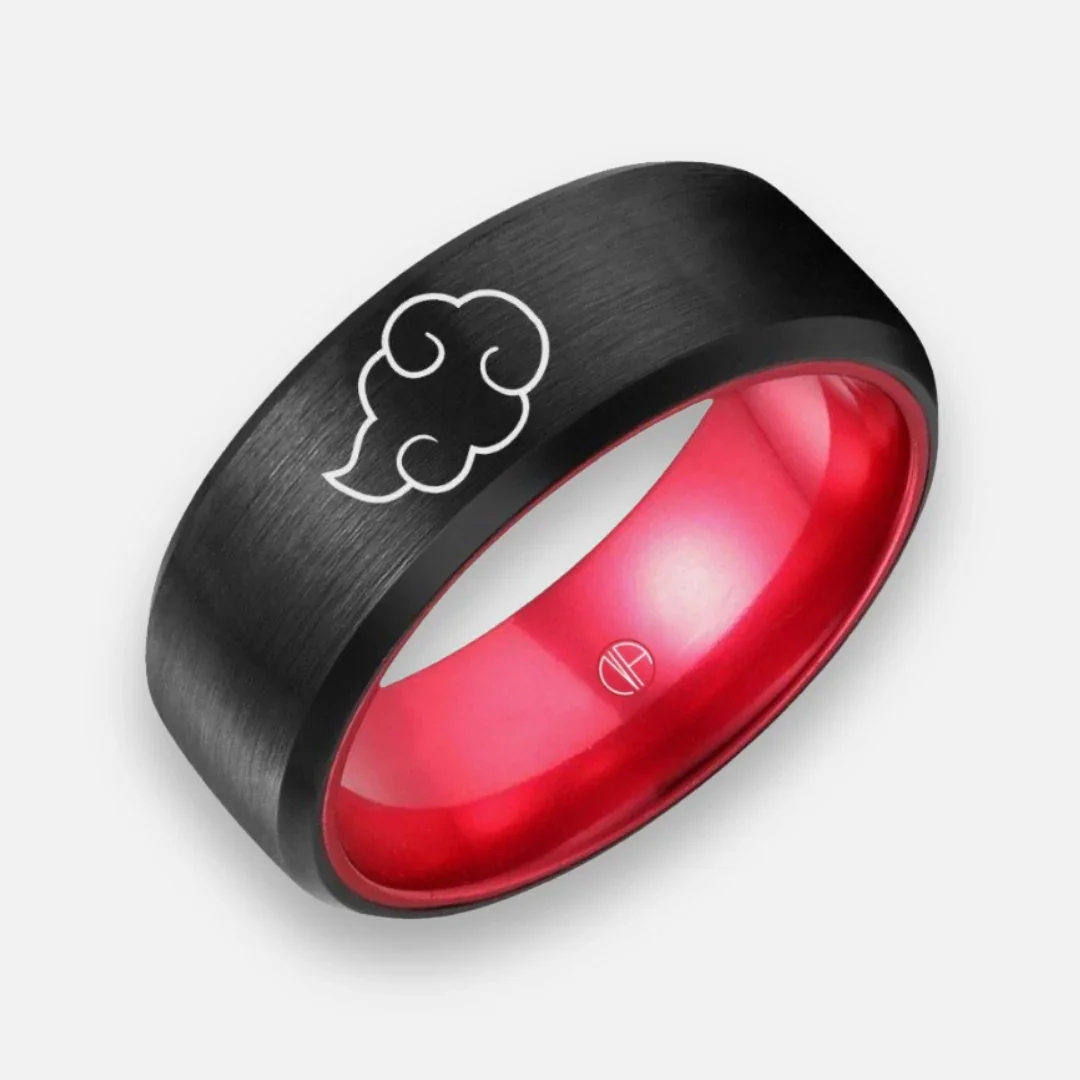 The Iconic Cloud Onyx Black finish over tungsten Crimson Red inner band 8mm wide Multi-year best seller Original NANIMERICA design