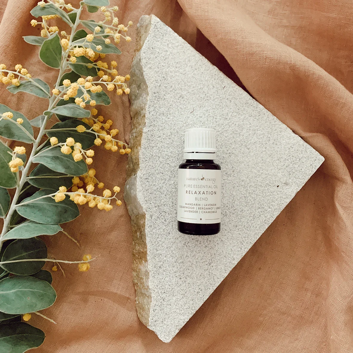 Experience the calming embrace of our Relaxation Essential Oil Blend, a staple in all of our facials at Nature's Energy Day Spa. This exquisite blend features the soothing aromas of: Mandarin : Uplifts mood and reduces stress Lavendin : Relieves tension and promotes deep relaxation Cedarwood : Grounds emotions and enhances mental clarity Bergamot : Eases anxiety and uplifts the spirit Lemon : Energizes and refreshes the senses Lavender : Calms the mind and improves sleep quality Chamomile : Soothes irritation and promotes overall calm How to Use: In the Bath : Add a few drops to your bathwater for a soothing soak. In a Diffuser : Use in an essential oil diffuser to fill your space with calming aromas. Topical Application : Dilute with a carrier oil and apply to pulse points for an on-the-go sense of relaxation. Facial Steams : Add a few drops to a bowl of hot water, lean over with a towel over your head, and inhale deeply. Discover tranquillity and rejuvenation with Nature's Energy Relaxation Essential Oil Blend.