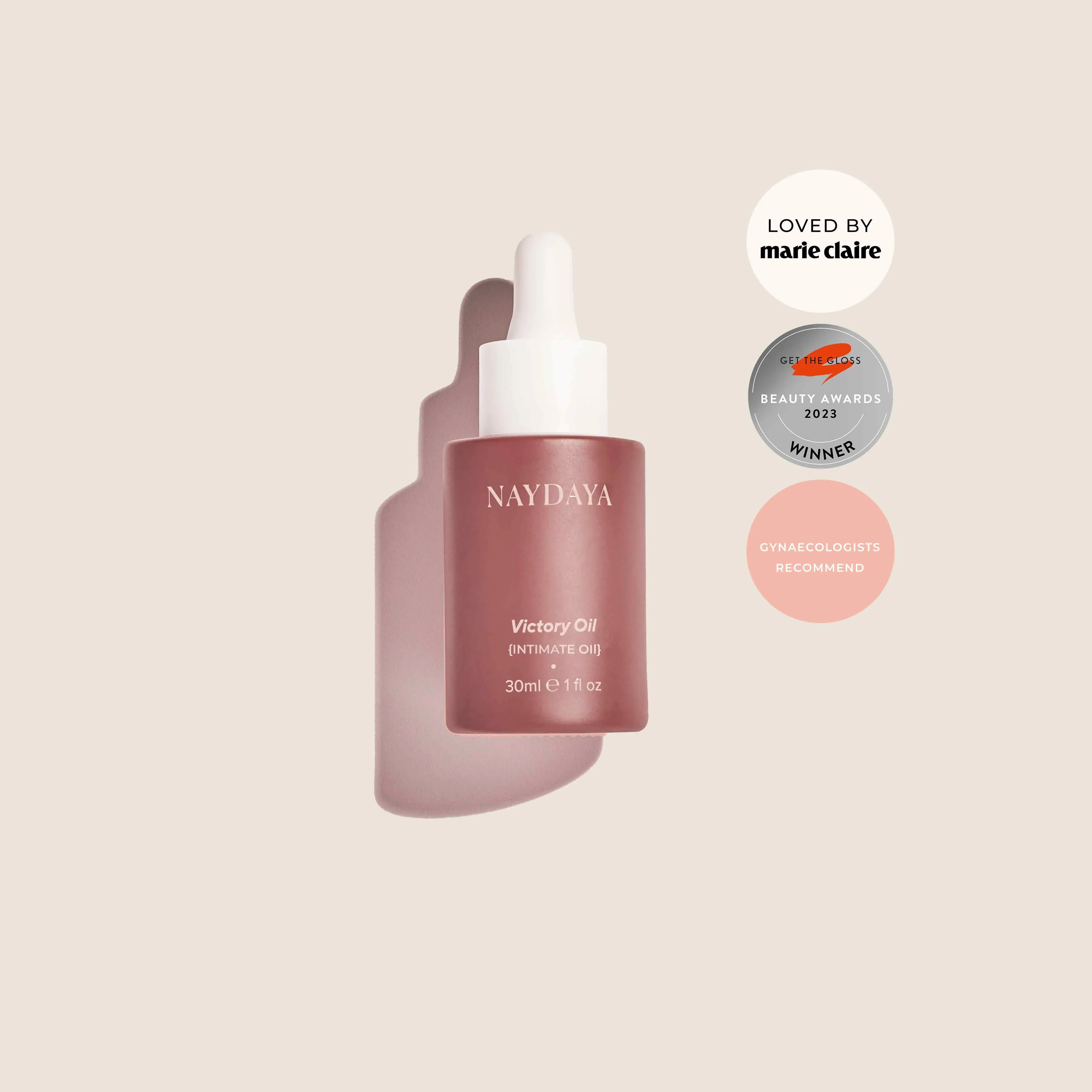 DETAILS Suffering from intimate dryness ? You're not alone. We surveyed over 2000 women and found that 83% of women have been affected by intimate dryness at some point in their lives, and 66% of women reported that intimate dryness negatively impacts their sexual relationships. Our award winning Victory Oil, designed with leading gynaecologists, and loved by thousands of women is a non-irritating, hormone- and silicone-free moisturizer to give your vulva instant comfort. 100% natural treatment for vaginal atrophy Vegan Certified, Cruelty Free, Made in the UK Use For: - Perimenopause & menopause intimate & vaginal dryness relief - Perineal massage; pre & postnatal - Relief from menopausal vaginal itching - Treatment and relief for episiotomy scars HERO INGREDIENTS Pomegranate Oil - boosts collagen production and quality, it has regenerative properties which support the health of intimate skin. Mango Butter - loaded with antioxidants, it soothes irritation, moisturises, softens, and heals intimate skin. Nourishing Oils and Vitamin E ; Almond, Castor, Grapeseed, and Coconut oils have antibacterial properties, reduce inflammation, and help promote skin healing FAQs Where can I apply Victory Oil? Victory Oil is designed for use on the vulva, which is the exterior skin, including the labia, perineum and external vaginal opening. You can apply Victory Oil up to an inch inside the vagina, if experiencing discomfort there. Can I use Victory Oil for lichen sclerosus? We would always recommend seeking medical advice for such conditions, but our customers report that Victory Oil can offer great relief from the symptoms of LS. Is Victory Oil hormone-free? Yes, Victory Oil is 100% natural, estrogen-free, and hormone-free. Can I use Victory Oil with condoms? As Victory Oil is oil-based, it is not suitable for use with condoms. Can I use Victory Oil alongside other treatments? Yes, although it may be worth applying them at different times of the day, to allow both Victory Oil and your other treatments to absorb into the skin. HOW TO USE For Intimate Dryness: For best results, apply Victory Oil twice daily. After showering, apply 1-2 pipettes-full to fingertips, and gently massage onto intimate areas including vulva, perineum, inner and outer labia. Insert finger only 1 inch or less into vaginal opening, if you are experiencing discomfort there. For best results use twice daily. This will help improve elasticity and reduce dryness. Perineal Massage: In pregnancy, and postpartum. Apply and massage 3-4 drops daily from 34 weeks of pregnancy. See our perineal massage videos or read our step by step guide on performing perineal massage. *As an oil based product Victory Oil is not suitable with condoms. INGREDIENTS Prunus Amygdalus Dulcis (Sweet Almond) Oil, Vitis Vinifera (Grapeseed) Seed Oil, Ricinus Communis (Castor) Seed Oil *Cocos Nucifera (Virgin Coconut) Oil, Tocopherol (Vitamin E), Mangifera Indica (Mango) Seed Butter, *Punica Granatum (Pomegranate) Seed Oil *Certified Organic Ingredients 100% Natural, 98% Organic Safe during pregnancy and breastfeeding. Free from lanolin and beeswax Formulated for the most delicate and sensitive skin CLINICALLY PROVEN After 3 days 87% of users said Victory Oil instantly relieves dryness 85% of users say Victory Oil relieved irritation 83% of users say Victory Oil relieved itchiness After 1 week 94% said Victory Oil felt soothing 90% said Victory Oil relieved dryness After 4 weeks 86% of users were more comfortable during intercourse 95% said Victory Oil reduced stinging and burning 95% said Victory Oil felt like a natural lubrication 95% said Victory Oil provided long-lasting hydration 94% said Victory Oil provided long-lasting comfort and relief 88% of users saw an improvement in their sex life 90% would recommend to friends & family *Independent user trial conducted in May-June 2024. Results based on a 108 person study, applying twice daily for 4 weeks.