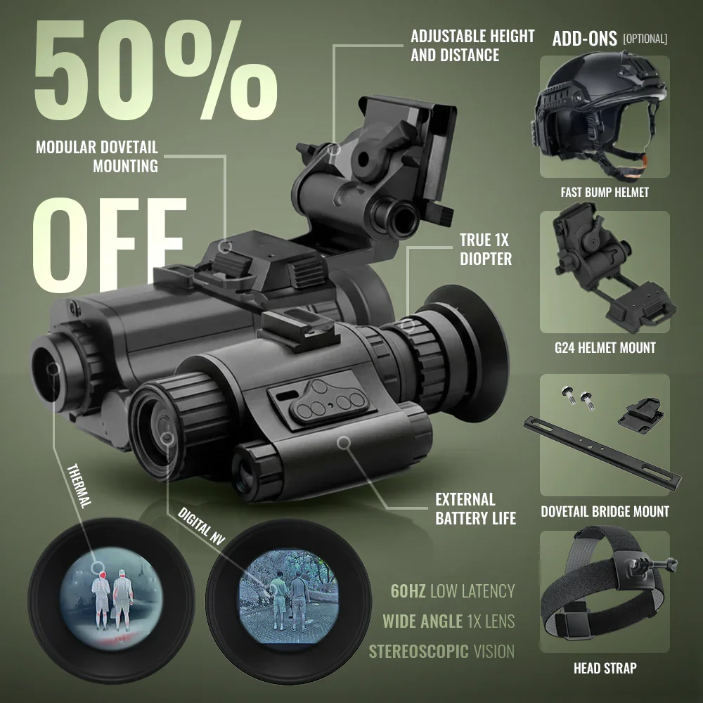 BIG NEWS! We listened to your feedback and redeveloped our Dual Tube Bridgeable thermal & digital night vision goggles from scratch! • Modular bridging & dovetail mount • Thermal is Compatible with any NV device (PVS14) • Adjustable 1x lens, perfect image overlap See in thermal & infrared spectrum with both eyes! Spot targets before they see you. Get thermals at a fraction of the cost. Limited quantity on sale now! Can you dominate the playing field? Click to find out: https://nightoperators.com/products/dual-night-vision-goggle