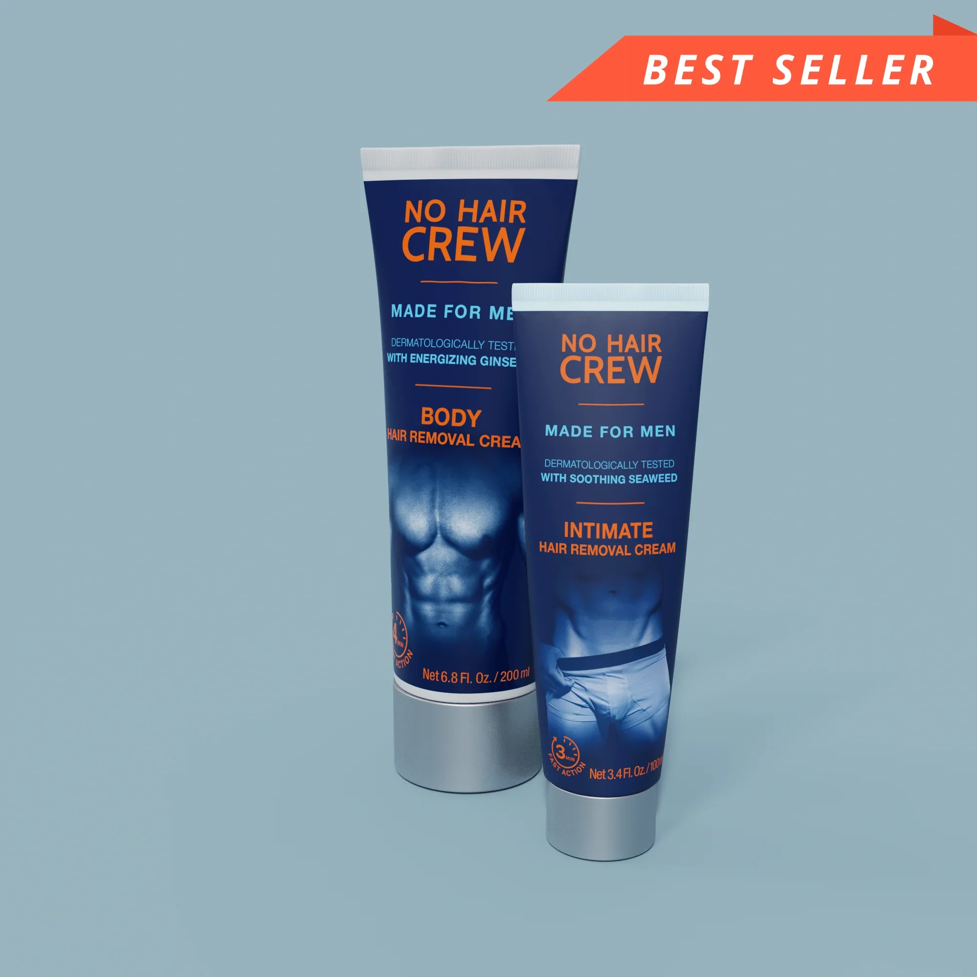 NO HAIR CREW formulates and manufactures the best hair removal creams for men. Hair removal creams provide a safe and quick alternative to razors, tweezers, and other uncomfortable forms of men's hair removal. Out INTIMATE Hair Removal Cream is the best way to manscape your hair down there!
