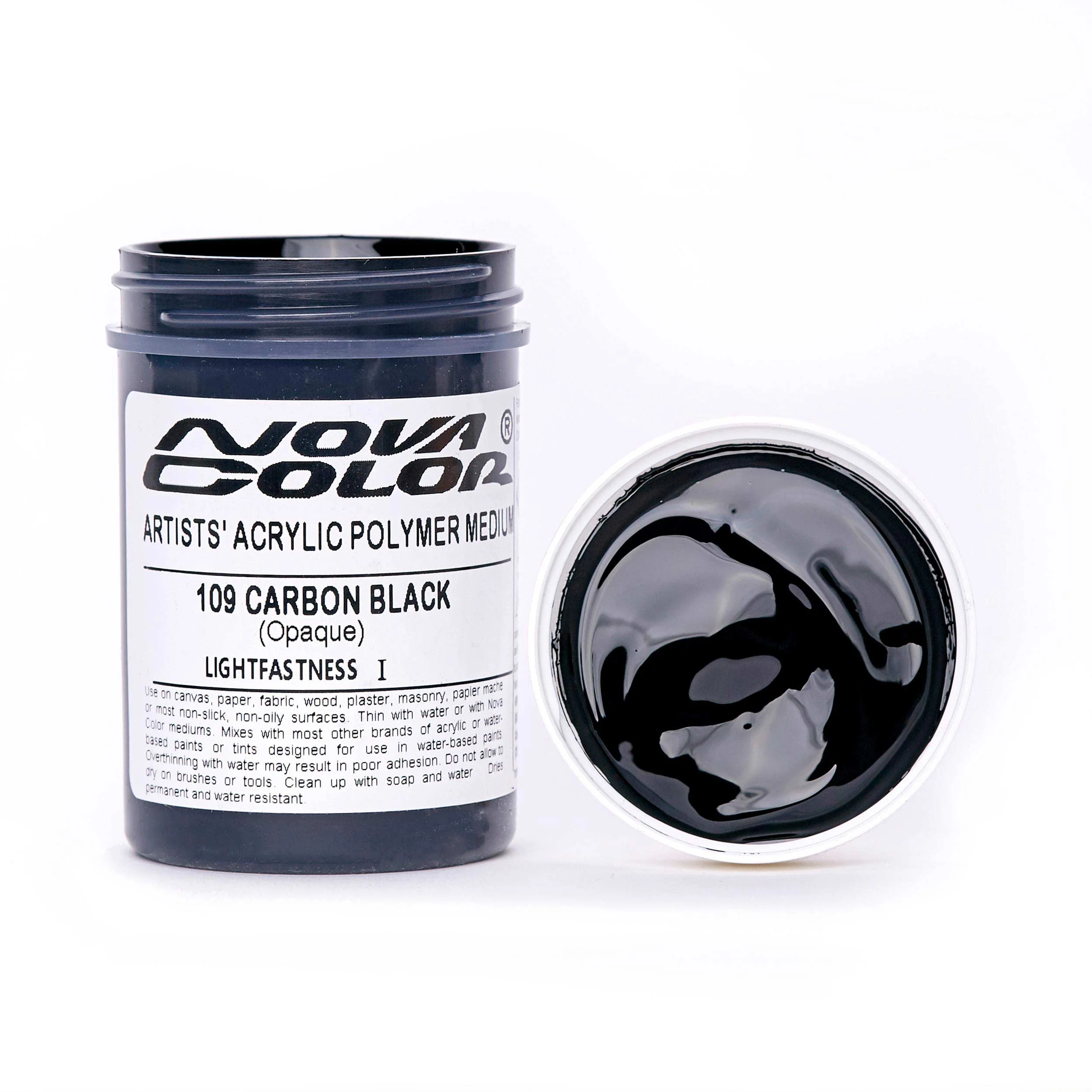 Not all black acrylic paint is created equal. You need a heavy-body acrylic paint that is highly pigmented and easy to apply. So after minimal coats, you have a solid black background that you desire without any transparent patches. Nova Color’s Carbon Black acrylic paint is a cost-effective and easy-to-use heavy-body artist acrylic paint that is the perfect addition to your craft kit. This isn’t your average black acrylic paint. Carbon Black is our blackest black and is incredibly opaque with a slight sheen. Carbon Black acrylic paint lets in no light, meaning you have the ultimate black pigment that gives you the darkest shade possible that is perfect for outlining, shading, mixing, and more. Each gallon of Carbon Black acrylic paint is analyzed with test samples to ensure color consistency. You can rest assured that this black acrylic paint will never be transparent or splotchy. It also adheres to a wide range of surfaces, making it a versatile addition to your paint collection. Whether you’re creating a mural, fine art, or painting furniture, you will work with confidence knowing that Carbon Black is easily applied and make your project look sleek and chic. While a bold black may not be a color used in your every day painting projects, having quality Carbon Black professional acrylic paint on hand is a good idea. Whether you’re outlining fine details or creating a solid black background for a stunning visual effect, Carbon Black professional acrylic paint should be on hand from now on. You can also mix small amounts of Carbon Black paint to create deeper shades of your favorite colors. This is ideal for capturing color gradients and shading. So, what are you waiting for? It’s time to see the allure of Carbon Black acrylic paint for yourself. We are excited to offer Carbon Black paint, a dark color with a lightfast pigment. Our Carbon Black Lightfastness Opaque is proudly Made in the USA. Get your blackest black professional-grade acrylic paint today.