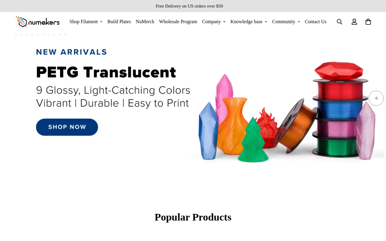 NuBox is your ticket to exploring the vibrant world of 3D printing with high-quality filaments delivered to your door each month. Whether you’re a hobbyist or a professional, NuBox gives you the materials you need to bring your ideas to life. Now Introducing the PETG NuBox In addition to our original lineup, NuBox is expanding with a new PETG-focused box—designed for makers who want added durability, strength, and performance. Choose the box that best fits your projects and printing style. What’s Inside Each NuBox? Two New Colors or Special Materials Each month brings two exciting new filament colors or specialty materials—such as carbon-fiber blends, marble finishes, or wood options—often revealed first to subscribers before they’re released to the public. Every box is a chance to discover something fresh. One Planned Standard Color Alongside the new releases, you’ll also receive one of our planned standard colors. This ensures you always have a reliable, versatile filament on hand for everyday projects and prototyping. Why Choose NuBox? Exceptional Value Each NuBox delivers premium materials at a price that offers significant savings compared to buying individually. Recent boxes have included specialty filaments that typically retail for $20–$30 per spool. Greater Color Diversity We guarantee no color repeats within a year, so your collection stays fresh, varied, and inspiring. Convenience Enjoy free shipping and automatic delivery straight to your door—no last-minute supply runs or surprise shortages. Exclusive Community Subscribers get access to the Numakers Discord, including a dedicated NuBox channel with sneak peeks of upcoming colors, print showcases, feedback opportunities, and direct support from our team. Subscription Details Monthly Billing Your card is billed immediately for your first box, then on the 28th of each month. Limited Availability New subscription slots open on the 1st of each month around 12 PM EST and sell out quickly. Get Started Today Upgrade your 3D printing experience with a steady stream of premium filaments and exclusive access to the NuBox community. Subscribe today and keep your creativity moving forward—month after month.