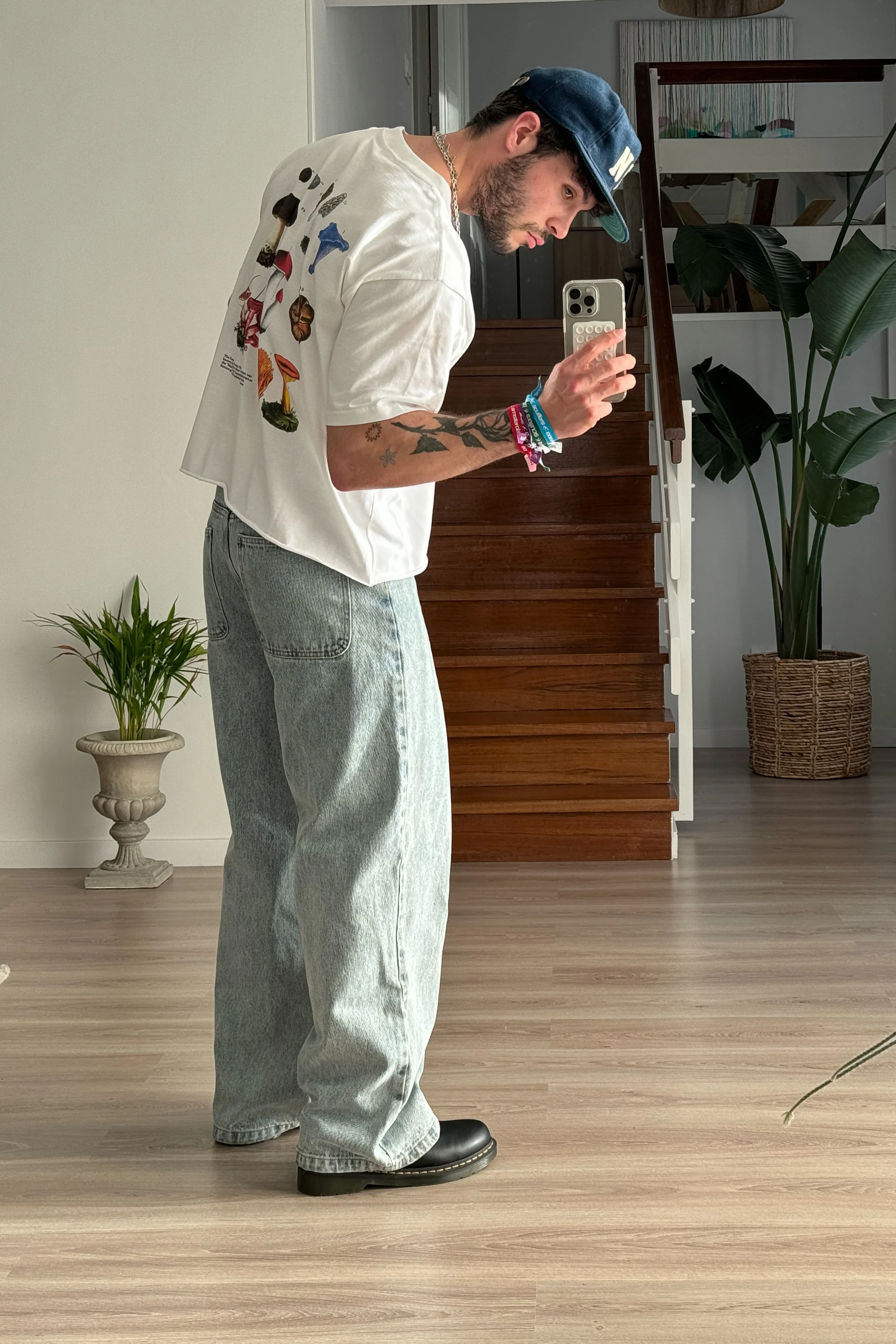 Camiseta oversize hecha en Portugal siempre en nuestro algodón orgánico de 210gr, suave y prelavado. Camiseta en colaboración con Marco Oggian
