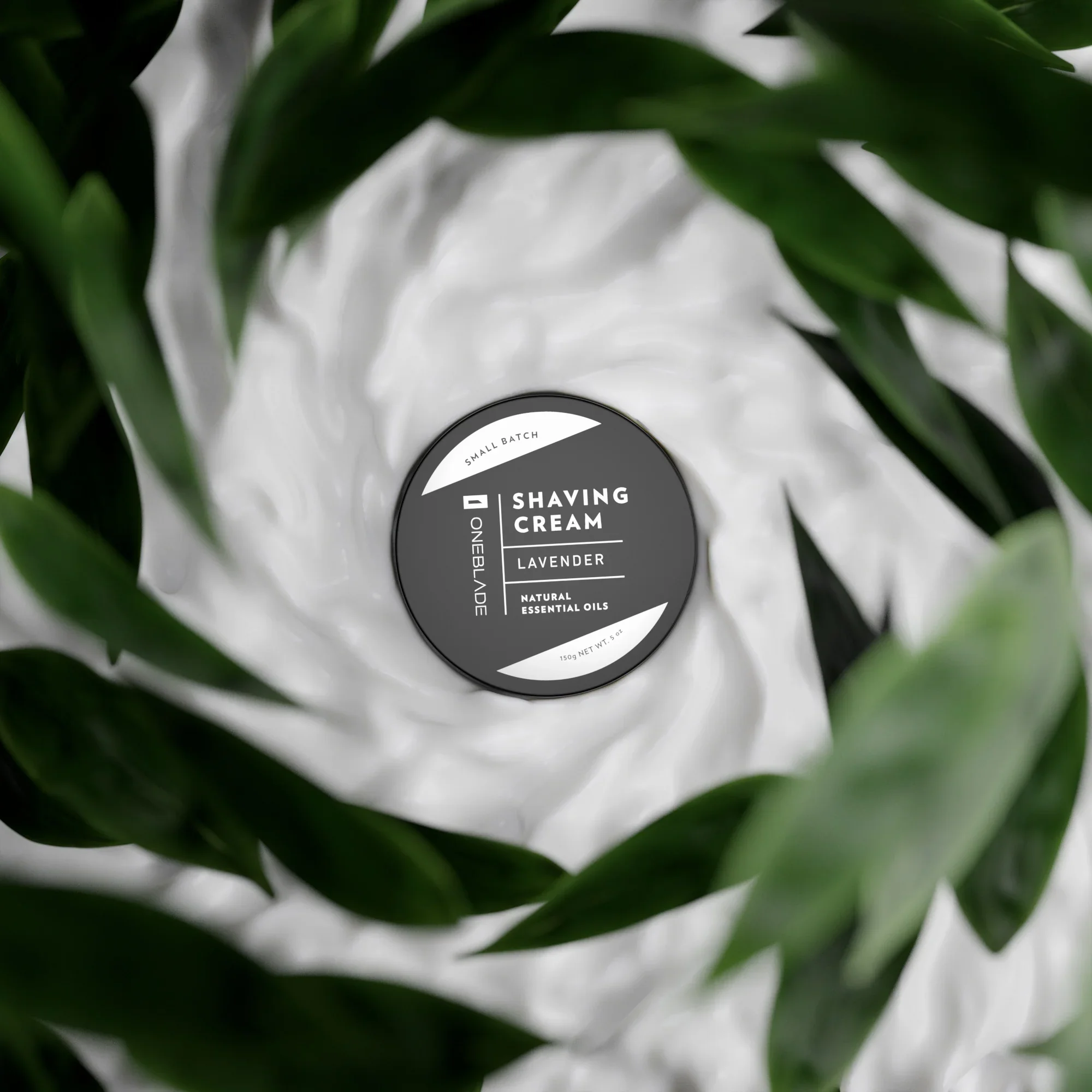 The Best Safety Razor Shaving Cream Achieve the perfect shave every time with OneBlade Small Batch Shaving Cream . After months of rigorous testing and formulation, we’ve crafted an ultra-skin-friendly shave cream that lathers effortlessly, softens hair, and delivers an unparalleled shaving experience. Our rich blend of natural ingredients, antioxidants, and essential oils ensures a smooth shave that leaves your skin nourished, hydrated, and irritation-free. Why You'll Love Our Shaving Cream: This premium shaving cream features powerful, all-natural ingredients such as Aloe Vera , Cocoa Butter , and Shea Butter that protect and moisturize your skin. Infused with essential oils like Lavender , Geranium , Sweet Almond , Apricot , Avocado , and Safflower , our formula not only softens your hair for maximum razor glide but also helps prevent ingrown hairs, fights razor burn, and leaves your skin feeling refreshed and smooth after every shave. *Lavender and Sandalwood shave cream now come in a 6oz tube. Barbershop scent will be in a 5oz jar until we sell out of that inventory (early Nov 2025 sometime). OneBlade Shaving Cream Key Benefits: Softens and prepares skin: Perfect for a close, irritation-free shave, even on sensitive skin. Prevents razor burn and ingrown hairs: Glides easily to help reduce common shaving issues. Rich, luxurious lather: This soft cream formula creates an incredible lather with or without a shave brush. Hydrates and nourishes: Packed with natural moisturizers and antioxidants to keep skin soft and healthy. Premium Shaving Cream Ingredients: Our formula is free of harmful chemicals, ensuring a clean and healthy shave: Aloe Vera : Soothes and hydrates your skin, reducing irritation. Cocoa Butter & Shea Butter : Deeply moisturize, protecting your skin's natural moisture barrier. Lavender & Geranium Essential Oils : Offer calming, anti-inflammatory properties. Sweet Almond & Avocado Oils : Rich in vitamins and antioxidants, promoting skin repair and hydration. Clean & Ethical Skincare: Sulfate-free , paraben-free , and alcohol-free . Cruelty-free : Never tested on animals. Handcrafted in small batches in the USA to ensure the highest quality. How to Use: For the ultimate shaving experience, apply a small amount of Black Tie Shaving Cream to damp skin. Work into a rich lather using your hands or, for best results, a OneBlade Shave Brush and our Black Marble Shave Bowl . Shave as usual, then rinse thoroughly. Follow with our Black Tie After Shave Balm for optimal post-shave care.
