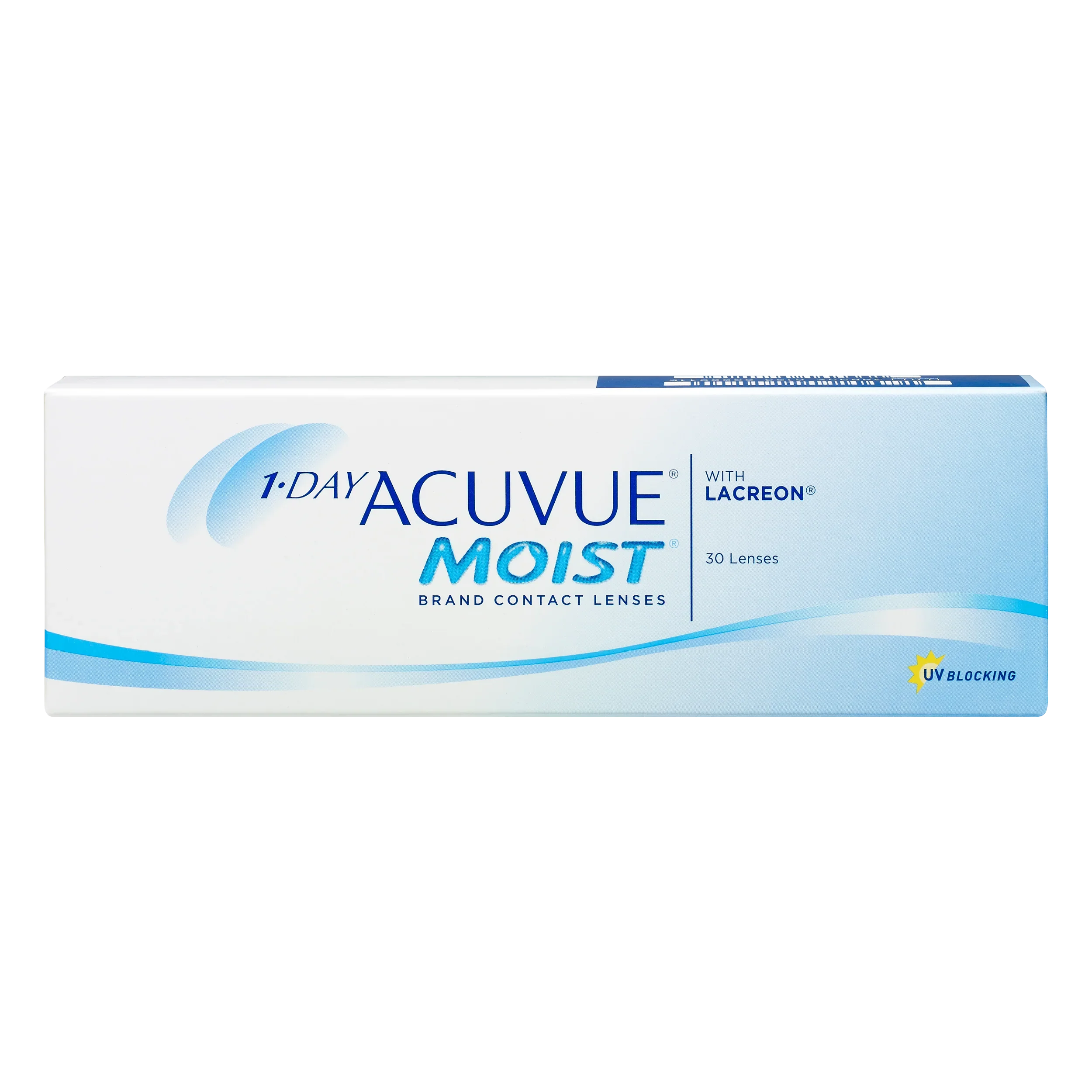 1-DAY ACUVUE ® MOIST daily contact lenses provide enhanced hydration by helping to keep moisture in and irritation out 1 . They provide a long-lasting cushion of moisture for 20 hours or more 1 and unbeaten comfort in their category § Class 2 UV-Blocking of 99% of UVB and 85% of UVA rays 2 * † . § In 14 clinical studies posted on www.clinicaltrials.gov, 1-DAY ACUVUE® MOIST Brand Family (spherical, astigmatism, and multifocal) contact lenses hasnever been beaten in comfort in its category. www.clinicaltrials.gov is a website maintained by the NIH. The 14 clinical studies evaluated subjective comfort as a primary or secondary endpoint for 1-DAY ACUVUE® MOIST Brand Family (spherical, astigmatism, and multifocal) contact lenses with LACREON® technology, within the category of hydrogel daily disposable contact lenses. The review conducted as of April 25, 2021. *Helps protect against transmission of harmful UV radiation to the cornea and into the eye. †WARNING: UV-absorbing contact lenses are NOT substitutes for protective UV-absorbing eyewear such as UV- absorbing goggles or sunglasses because they do not completely cover the eye and surrounding area. You should continue to use UV-absorbing eyewear as directed. NOTE: Long-term exposure to UV radiation is one of the risk factors associated with cataracts. Exposure is based on a number of factors such as environmental conditions (altitude, geography, cloud cover) and personal factors (extent and nature of outdoor activities). UV- blocking contact lenses help provide protection against harmful UV radiation. However, clinical studies have not been done to demonstrate that wearing UV-blocking contact lenses reduces the risk of developing cataracts or other eye disorders. Consult your eye care practitioner for more information. References JJV Data on File 2021. Dual Action Technology and “Cushion of Moisture” Description for 1-DAY ACUVUE ®MOIST Brand Family of Contact Lenses. JJV Data on File 2020. Material Properties: 1-DAY ACUVUE® MOIST, 1-DAY ACUVUE® TruEye and ACUVUE® OASYS 1-Day with HydraLuxe™ Technology Brand Contact Lenses and other daily disposable contact lens brands.