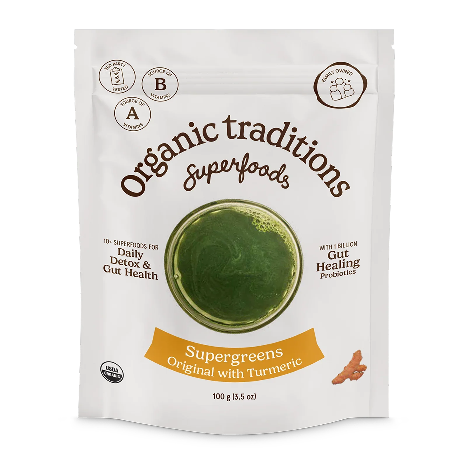 Daily supergreens for a good gut feeling. An organic blend of 7 supergreens packed with pre- and probiotics, turmeric, and matcha to support digestion, energy, and daily nutrition.