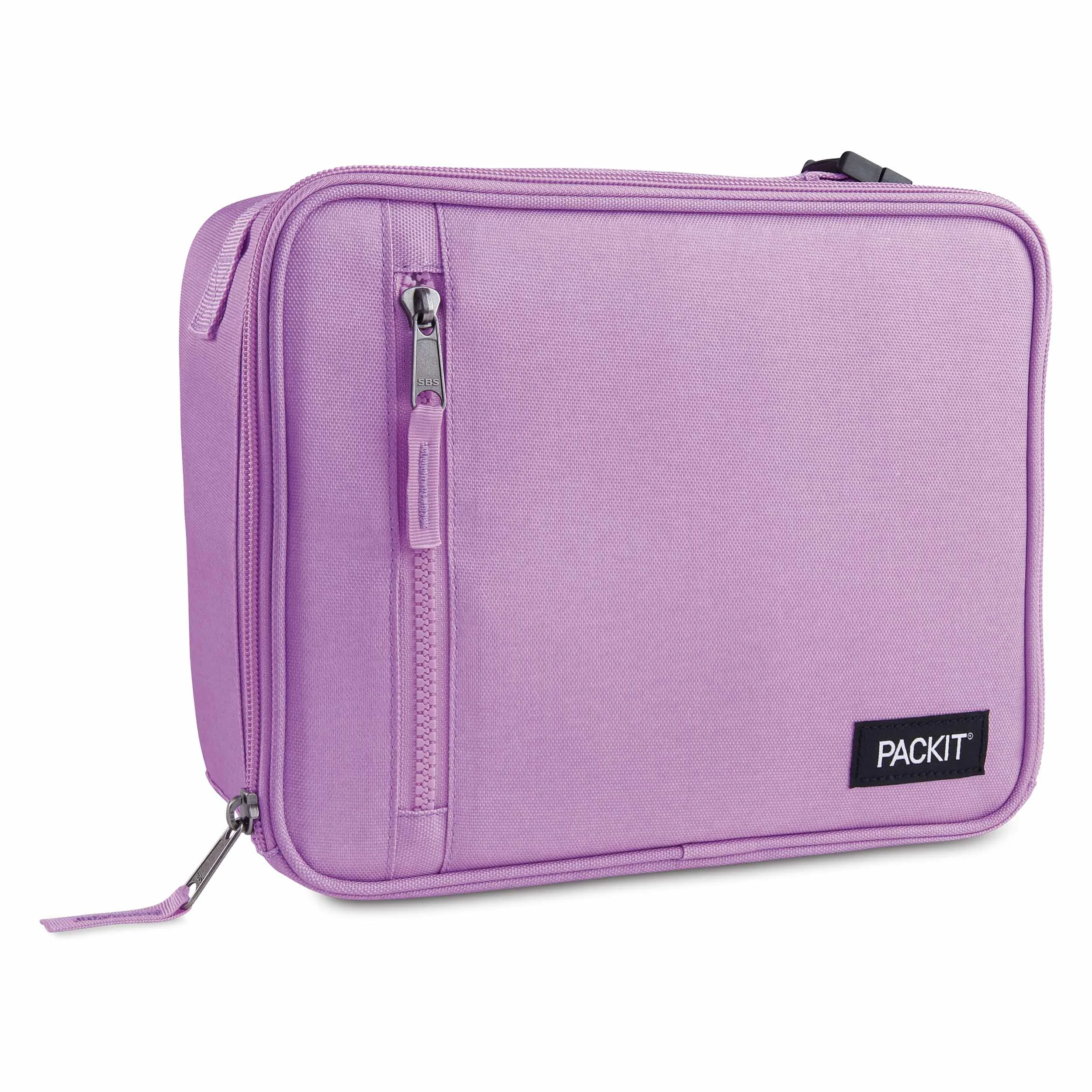 The Original PackIt Freezable Lunch Box Throwback lunch boxes meet new tech in these stylish horizontal silhouettes, ideal for kids to eat well anywhere, at any time. The top-load design makes it easy to pack flat and the buckle handle clip is convenient for travel to and from school, daycare and sports activities. The old-school lunch box is getting PackIt's cool twist! The Classic Freezable Lunch Box is the only horizontal lunch box with built-in cooling that chills food and drinks for hours. The secret is PackIt's groundbreaking technology : a freezable gel liner is integrated into the walls of the lunch box. The design eliminates the need for separate ice packs or gel packs. To use, simply flatten the lunch box and place it in the freezer overnight (12 hours for optimal results). In the morning, the walls of the lunch box will be completely frozen and ready to chill items for hours. PackIt lunch bags and lunch boxes keep food cooler longer, which allows you to pack healthy foods that would spoil in other lunch boxes such as dairy, deli meats, salads, fruits and veggies. The Classic Freezable Lunch Box by PackIt easily fits an entire meal and a 12 ounce (340ml) drink. A top-load design makes this lunch box simple to pack, and its kid-friendly zipper closure locks in cold, dry air. This innovative lunch box also features a slim exterior zip pocket for ID cards or wipes. A buckle handle lets you clip the lunchbox onto totes, backpacks or sports bags. PackIt’s Classic Lunch box is made from nontoxic poly canvas and has a food-safe, water-resistant lining. Like all PackIt products , the Classic Lunchbox is made from PVC-, BPA-, phthalate-, formaldehyde- and lead-free materials. Care: wipe thoroughly or hand wash the interior and spot clean exterior; allow bag to dry completely before freezing. Not machine or dishwasher safe. PackIt’s Classic Freezable Lunch Box measures 8.25 inches tall, 10 inches wide and 4.25 inches deep while open. When collapsed, it measures 10 inches wide, 8.5 inches deep and 2.25 inches tall for easy storage in the freezer.