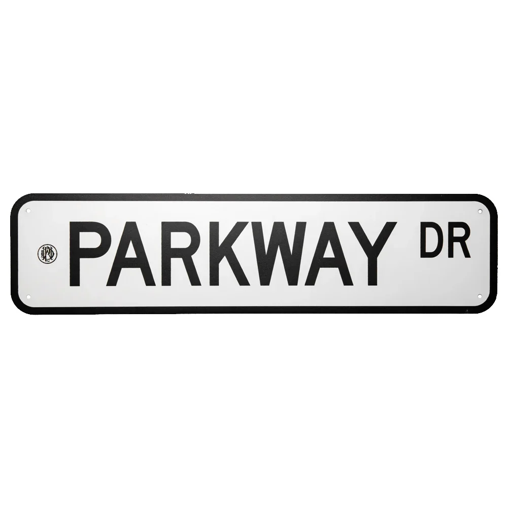 Official Parkway Drive Street Sign One sided print Material: Metal Aluminum 4 holes for easy mounting Size: 61cm w x 15.25cm h Please note that the sign may have minor wear and tear in particular parts due to the nature of the product .