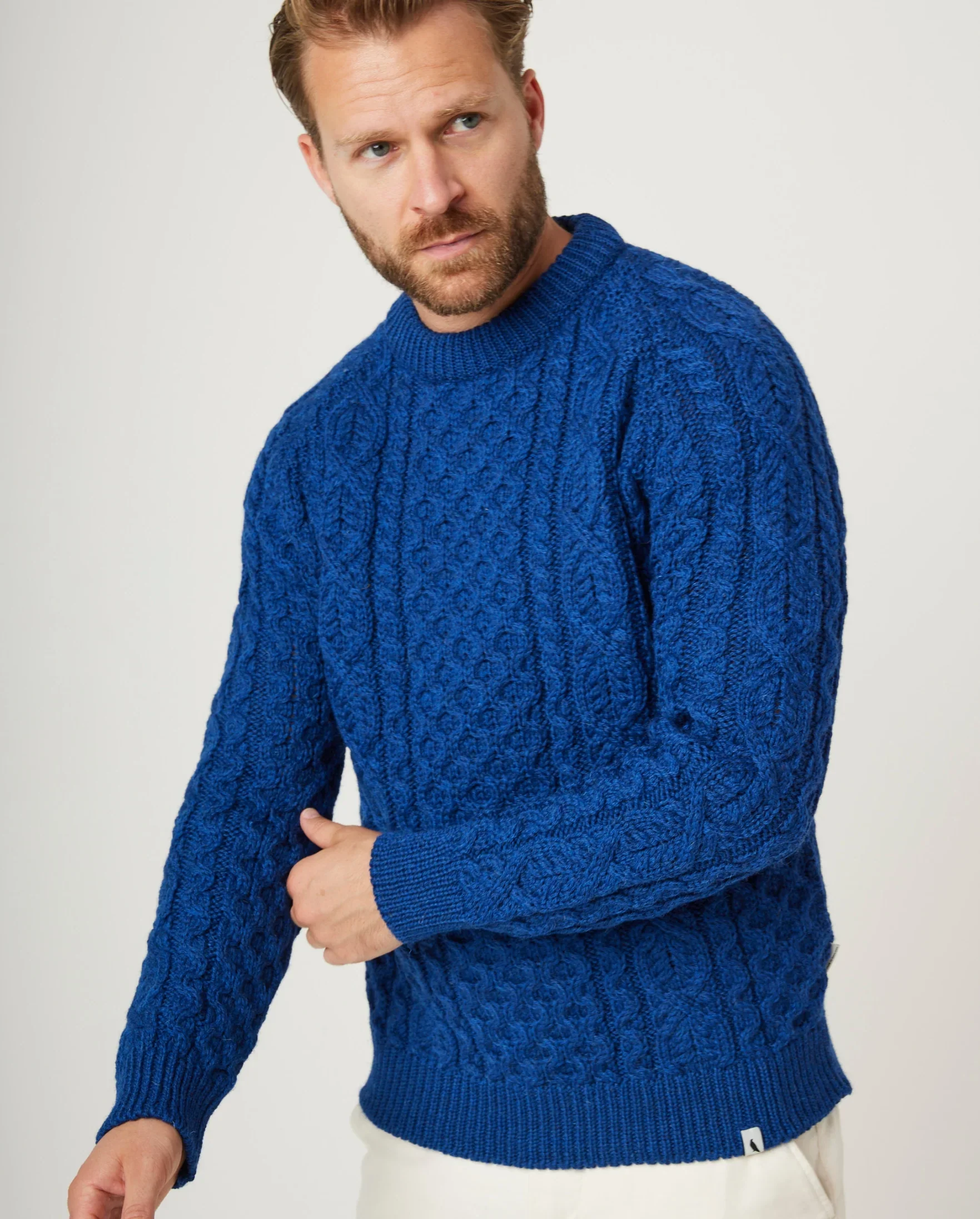 Inspired by the hard-wearing woollen jumpers worn by British fishermen for decades, our Hudson Aran cable knit jumper is extra warm in cold weather and naturally water-repellent. Stylish and strong, perfect for any winter capsule wardrobe. The wool contains flecks of various colours dotted across the surface. Please note, that this style comes up big, so we recommend you size down if you are between sizes.