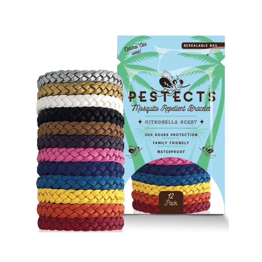 Introducing Pestects, the 100% natural insect repellent that is safe for the whole family to use. Our unique formula features a blend of natural plant oils such as citronella, lemongrass, eucalyptus, and peppermint to provide effective protection against mosquitos, fleas, midges, ticks, and other pesky insects without the use of overpowering chemicals. With over 65,000 satisfied customers , Pestects has helped families all over the world enjoy the great outdoors without the stress of constant reapplication or exposure to harmful chemicals. Our innovative mosquito bracelets provide a convenient and effortless way to stay bug-free all year round, with each bracelet providing up to 300 hours of protection . Simply attach the bracelet to your wrist, ankle, or backpack and forget about pesky insects and mosquitoes. Available in 12 vibrant colours per packet, each bracelet releases a subtle citronella scent that shields you from bugs without overwhelming your senses. To ensure maximum repellent effectiveness, store unused bracelets in the sealable packet provided. With Pestects, you can explore the great outdoors with confidence, knowing that you and your family are protected by a natural and chemical-free solution. Shipping & Returns Enjoy free domestic shipping and returns on all orders over £30.00! International shipping on all orders available. We take great pride in offering the finest natural repellent products on the market. We are so confident in the quality of our products that we offer a 100% money-back guarantee within 30 days of the delivery of your order. For more information, please visit our Returns Page or contact our friendly customer support team at [email protected] . We are available 24/7 to assist you with any questions or concerns you may have.