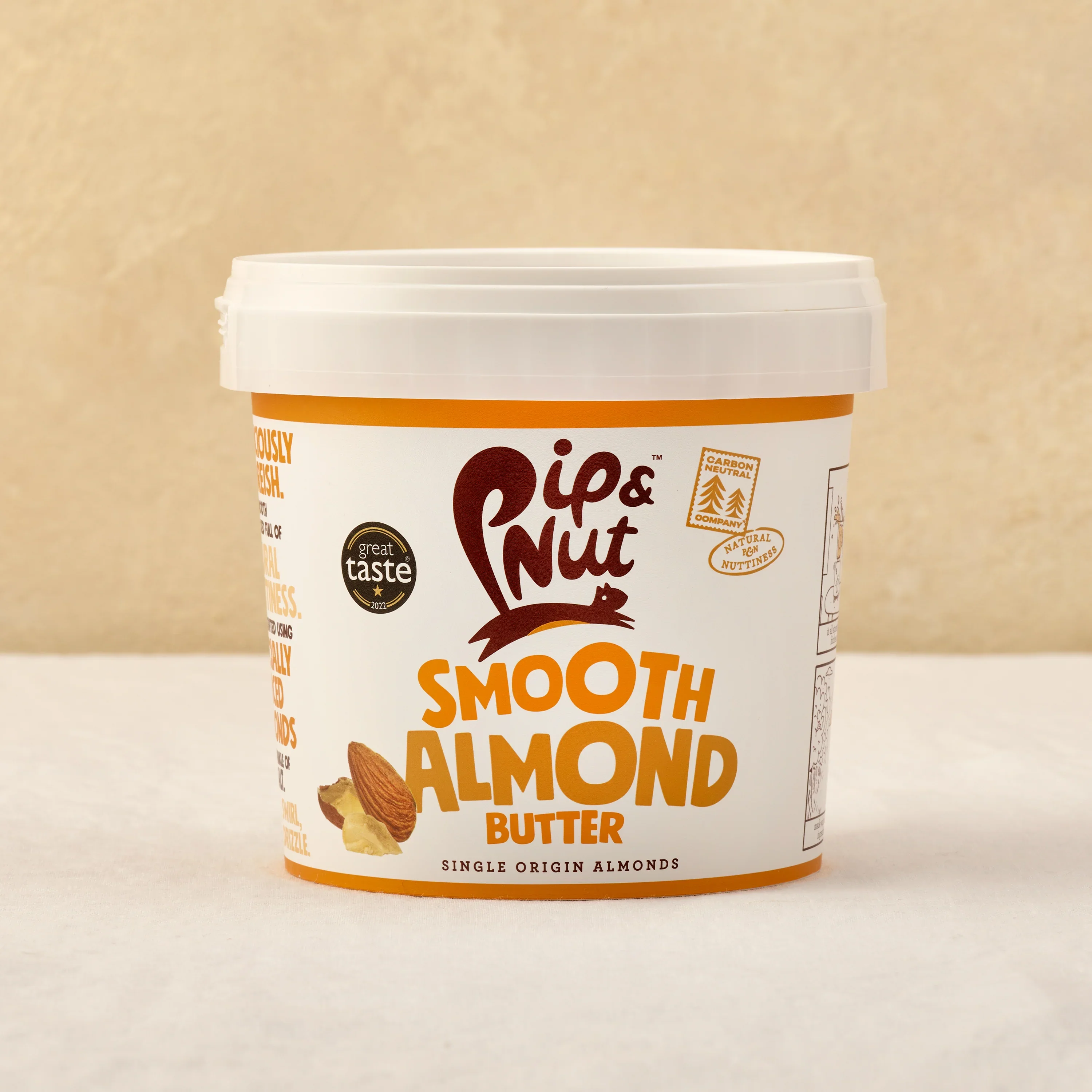 What is it? Out of 50 almond varieties only 4 were good enough for our almond butter. You might call that perfectionism, we call it 'don't stop until it tastes perfect'... ism. Our almond butter is silky smooth, full of flavour & made with only two ingredients: almonds (99.6%) & a sprinkle of sea salt. An almond sommelier would say it has 'earthy notes' & 'naturally sweet undertones'. You'll say our almond butter tastes great. Simple. What can I use it for? This is our 1kg tub - AKA as big as it gets. That means you can add a naturally nutty twist to everything. Porridge, banana bread, toast, protein smoothies, breakfast smoothies, salad dressings, ice cream, granola, apple slices - you get it. Our preference? Spoon it straight from the tub. || Best bits: Just two ingredients: almonds (99.6%) & a sprinkle of sea salt. We’re picky. Only 4 out of 50 almond varieties make the Pip & Nut cut. Our Californian almonds are high achievers. They’re high in mono-unsaturated fats (like avocados) & in fibre. No palm oil. Ever. No added sugar.* Source of protein & Vitamin E. Plant based. *contains naturally occurring sugars