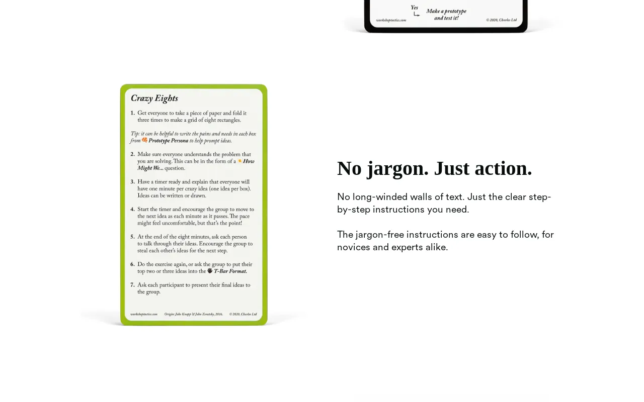 Workshop Tactics: 50+ proven workshop tactics to help you run productive sessions, solve real problems, and build better products - together. ✅ Stop wasting time in unproductive meetings ✅ Run sessions that solve real problems ✅ Lead with clarity and earn respect Perfect for: designers, product leads, facilitators
