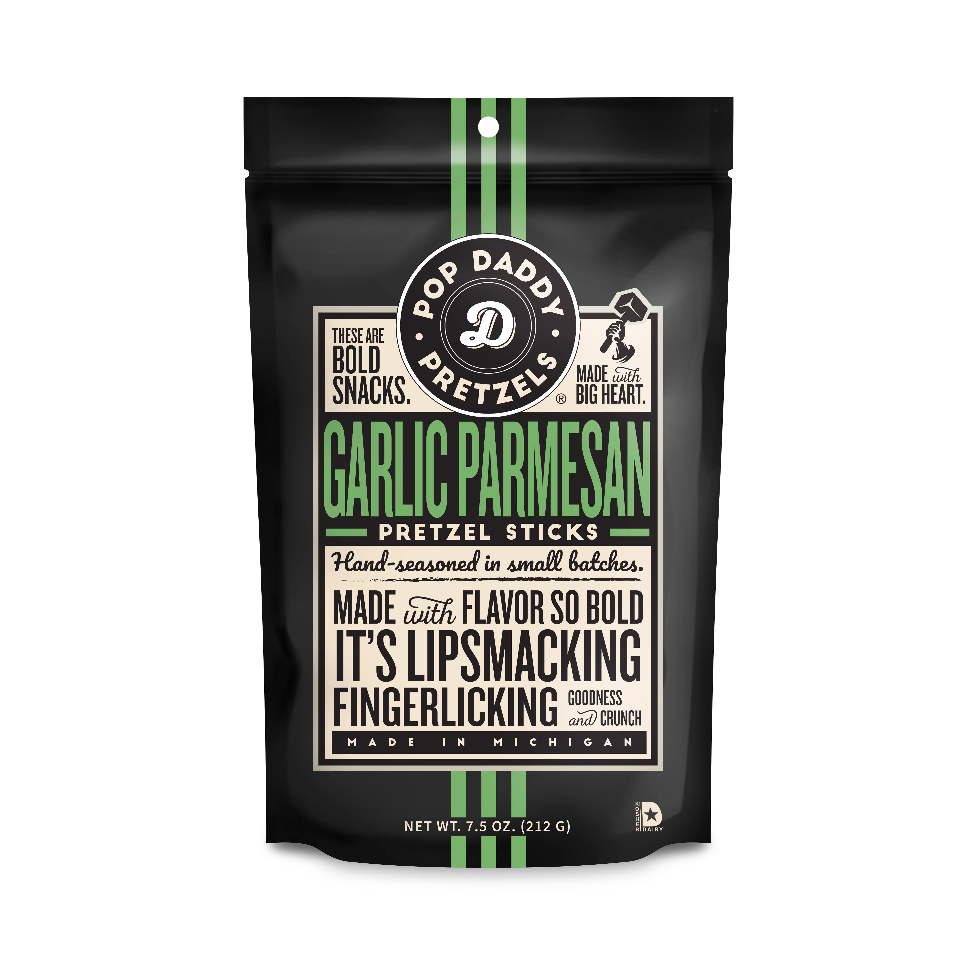 This likely combo is one that leaves you wanting to lick your fingers to get every last little bit of flavor. Our hand-seasoned batches ensure that every pretzel stick is layered in the goodness that is garlic and Parmesan. You don’t have to be Italian to appreciate these. But we can say it’s enough garlic that vampires won’t be bothering you anytime soon. BOLD flavor with no artificial colors and no artificial flavors Resealable bags (7.5oz Family Size Only)