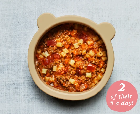 British beef mince with vegetables in a tomato sauce with wheat pasta. Contains 2 of their 5 a day. (200g) Recommended for 1 year + Ingredients Chopped tomatoes (Tomato (68%), Tomato juice (31.5%), Citric acid) (30.7%), Pasta (Durum wheat semolina) (15.6%), Beef mince (15.3%), Carrot, Mushroom (9.2%), Onion (6.1%), Celery , Water, Tomato puree (Tomato (100%)), Garlic, Cold pressed rapeseed oil, Mixed herbs (Basil, Oregano, Marjoram, Thyme) For allergens, see ingredients in bold . May also contain traces of eggs, fish, milk, mustard, nuts, peanuts, sesame, soy and sulphites. More information on allergens can be found here . From time to time, we may need to make changes to our recipes during production. Therefore please always refer to the product label for the most accurate ingredient and nutritional information.