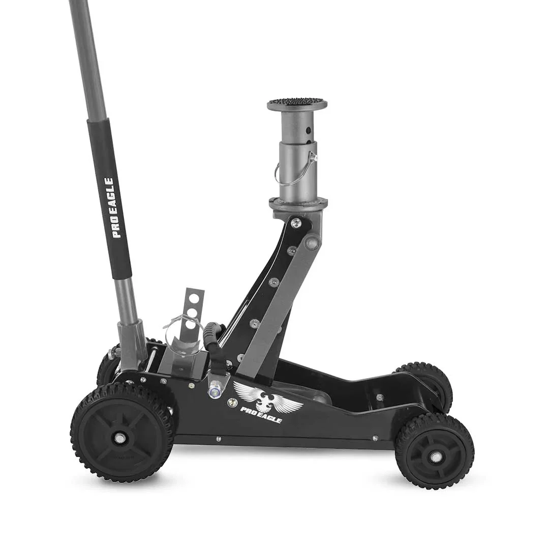 Lightweight, fast, and built to go anywhere — the Talon is our most compact off-road jack. With a massive 15" extension now included at no extra cost , and heavy-duty features, it’s the ultimate hydraulic floor jack for trail, garage, or track. Meet the the junior of Pro Eagle's lineup: our most advanced and compact off-road jack , designed to tackle the toughest terrains while being light, portable, and ready for any challenge. Despite its small size, the Talon offers incredible lift capacity and versatility, making it ideal for UTVs, trucks, and off-road vehicles . Its innovative design includes high-capacity, composite wheels that roll smoothly over rough ground without sinking, and a full-length steel skid plate to handle sand and rocky trails with ease. Engineered for speed and efficiency, the Talon’s fast pump valving allows it to reach full extension in just four pumps . Dirt, debris, and moisture are kept at bay with sealed rubber boots, ensuring reliable performance in the harshest conditions. Its compact dimensions and lightweight construction make it ideal for quick deployment under trucks or UTVs. The Talon comes standard with an 15" extension, (29" lift height) , making it capable of lifting vehicles with longer travel suspension. With optional accessories like height extensions, a jack mount, and a tool kit, you can customize your jack for any adventure. Special Note; The Talon has a short lift arm so the lift height comes from the extension length. If your vehicle has a low ride height it is possible that the jack may not fit under with the extension fully extended. ✅ Complies with ASME-PASE standards for safety and performance. 💪 2-Year Warranty SKU: ORJ15B4X