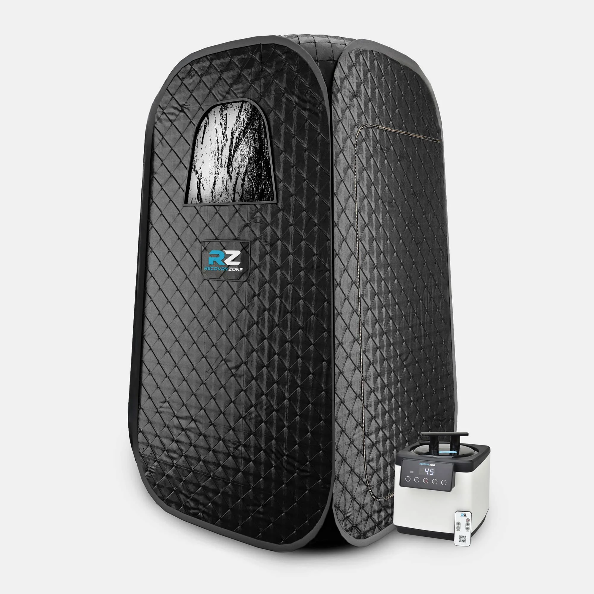 Introducing the Sauna Max - Elevate your well-being and recovery with our full-body portable steam sauna! Discover a sanctuary of tranquillity and well-being with the Sauna Max, a revolutionary product designed to enhance not only your physical recovery but also your overall sense of wellness. This innovative sauna boasts a hassle-free design that pops up instantly, enveloping you in a cocoon of relaxation. When your recovery session is complete, effortlessly fold it down and tuck it away in the included carry bag – well-being made easy. Crafted from thick, high-quality materials, the Sauna Max is engineered to efficiently retain heat, creating an environment conducive to relaxation and rejuvenation. But that's not all – immerse yourself in the additional benefits of steam therapy. The Sauna Max's advanced sauna steamer, with 15 temperature levels, introduces the soothing touch of steam, promoting mental clarity, easing tension, and enhancing your overall sense of well-being. Whether you're seeking post-workout recovery, stress relief, or a moment of personal escape, the Sauna Max caters to your holistic well-being. Customise your wellness experience with the included remote, allowing you to effortlessly adjust settings without leaving the comfort of your oasis. Transform any space into a haven for well-being with the Sauna Max. It's more than a product; it's a commitment to your overall health and well-being.