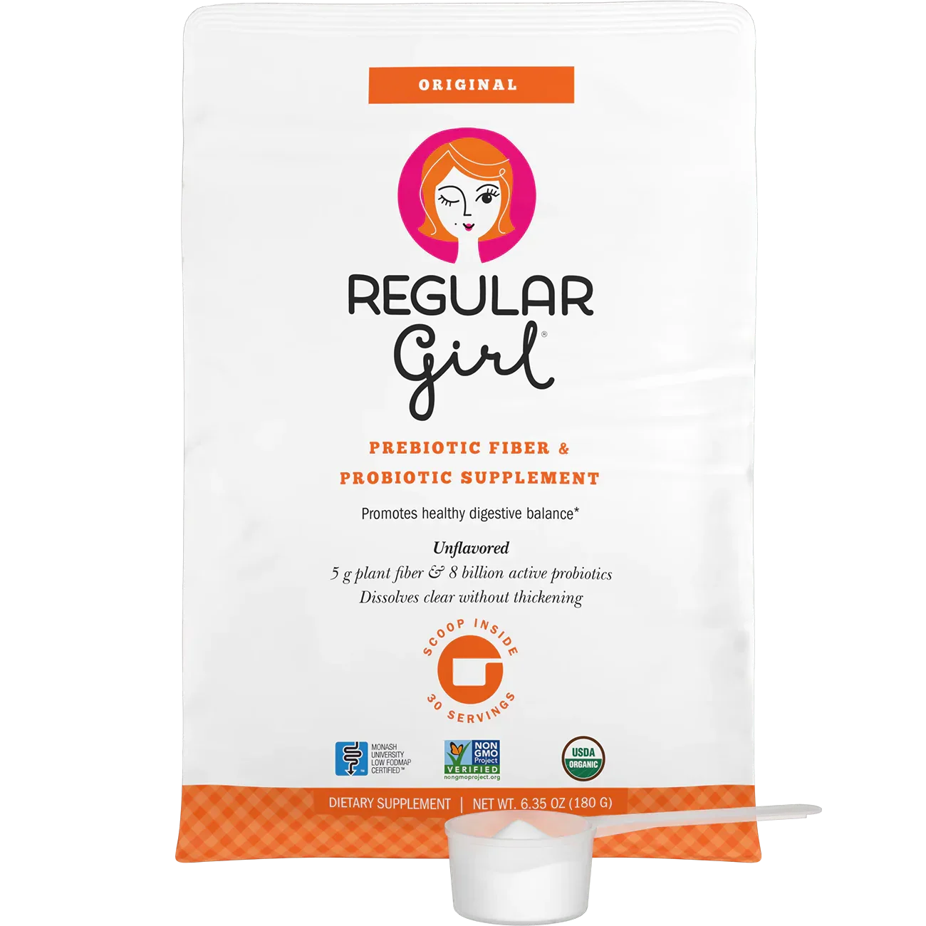 Discover Regular Girl, the best fiber and probiotic supplement for women. A perfect blend of prebiotic fiber and probiotic supplement for gut health.