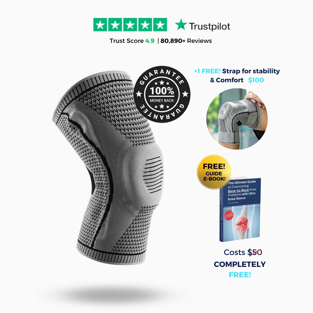 GIVE YOUR KNEES THE RELIEF THEY DESERVE The Ultra Knee Elite 2.0 was specifically designed to solve the #1 problem most people have when it comes to knee pain. It keeps you moving WITHOUT pain The Ultra Knee Elite 2.0™ Combines The Stability of A Brace With The Flexibility Of A Sleeve. ➥Tri-weave neoprene material keeps your knees warm and supple providing natural joint lubrication. ➥ Silicon impact pad provides stability for the knee cap as well as protection from bumps and bruises. ➥ Ergonomically sculpted fit ensures maximum comfort without slippage. ➥Revolutionary support strips give full range of motion while protecting from twists and sprains. ➥Discretely designed to be invisible under long pants . ➥ Easy-breathe, machine washable materials ➥Snug compression for all knee sizes - guaranteed! ➥Equally suitable for men and women. Highly Recommended by Doctors & Athletes! What results can I expect? ➥ Controlled pressure to increase blood flow in your legs and improve blood flow to the heart ➥ At the same time, it supports your veins and decreases swelling. ➥ Wearing our brace can improve your ability to get around and help you walk farther comfortably. ➥ Can alleviate pain associated with arthritis, osteoarthritis, and other associated issues. These conditions become more common as we age. ➥It gives your knee the stability of a brace with extreme flexibility that won’t slow you down. ➥And you’ll love how breathable the material is while being slim and discreet so it can easily be hidden under clothing. MADE OF MEDICAL-GRADE MATERIALS Designed with targeted compression zones to aid in the knee pain management and relief from a variety of ailments including Arthritis, Rheumatoid A rthritis, Osteoarthritis, Swelling, Tendinitis, Meniscus tear, Soreness, stiffness, ACL, PCL, MCL , and other knee pain.