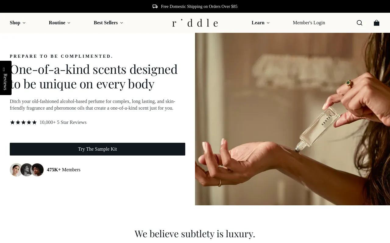"A few months ago, I got a tattoo and the artist commented on the scent. I went back two weeks ago and the same artist remembered me not from their work, but from the riddle body oil scent. I love it.”
