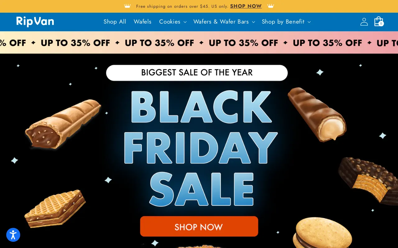 Rip Van (rip-van-wafels.myshopify.com) is a United States-based online store specializing in /Food & Drink/Food. The store is generating approximately $306K in monthly revenue, attracting 35K monthly visitors, with a catalog of 32 products. This brand ranks as a growing store with steady visitor engagement in its category. Their technology stack includes Accessibly, Brightflow AI Cash Forecasting, and Judge.me Product Reviews App for enhanced store functionality. Geographic distribution shows 77% of traffic from United States, followed by 7% from India.