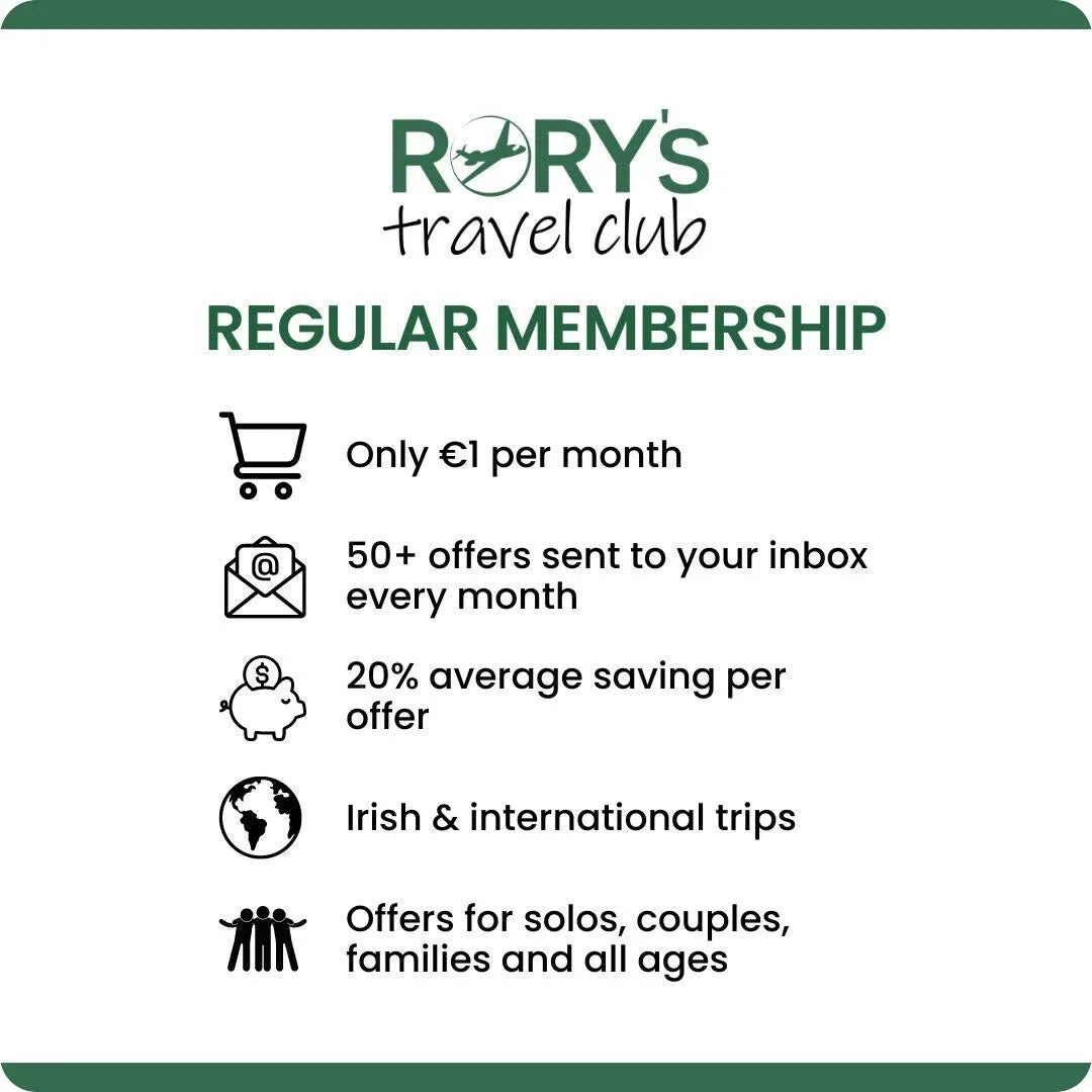 The Rory's Travel Club Regular Membership Subscription gives you access to our weekly offers and discounts.