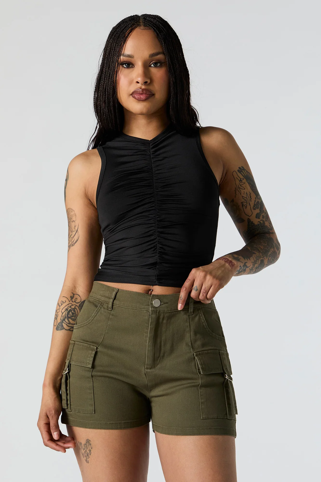 If cargos only have one fan.. We're them. This short features zip-fly button-up closure, belt loops, slide-in pockets, and cargo pockets with D-ring utility straps. Model wears size: Small - Model's Height: 5'8" 98% Cotton 2% Spandex Machine Wash in Cold Water - Gentle Cycle with Like Colours - No Bleach - Hang to Dry - Low Iron Imported
